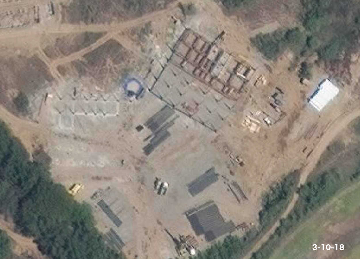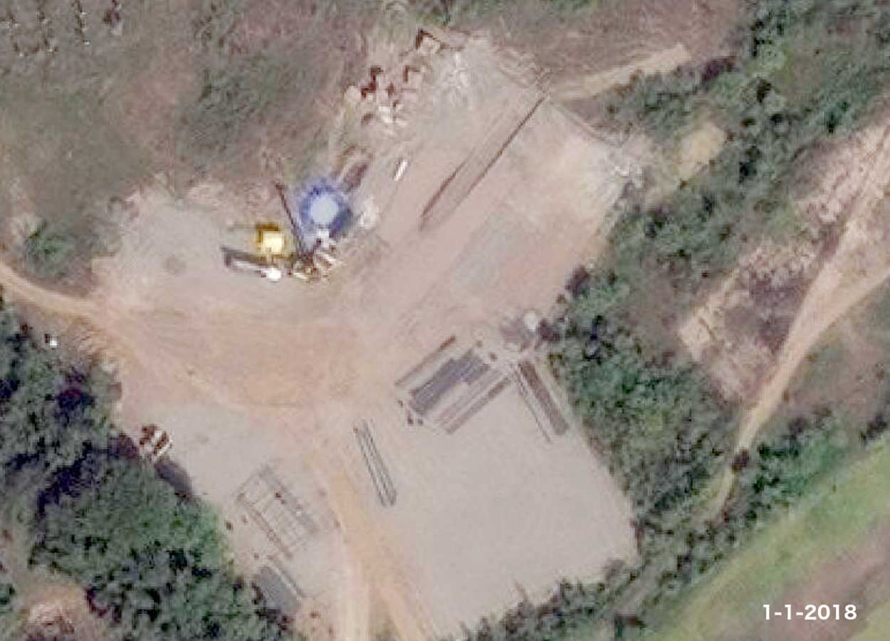 In January, 2018, what appears to be rebar and other building materials begin to appear in the clearing. Tap the image to expand; tap your browser's return arrow to return to this page.