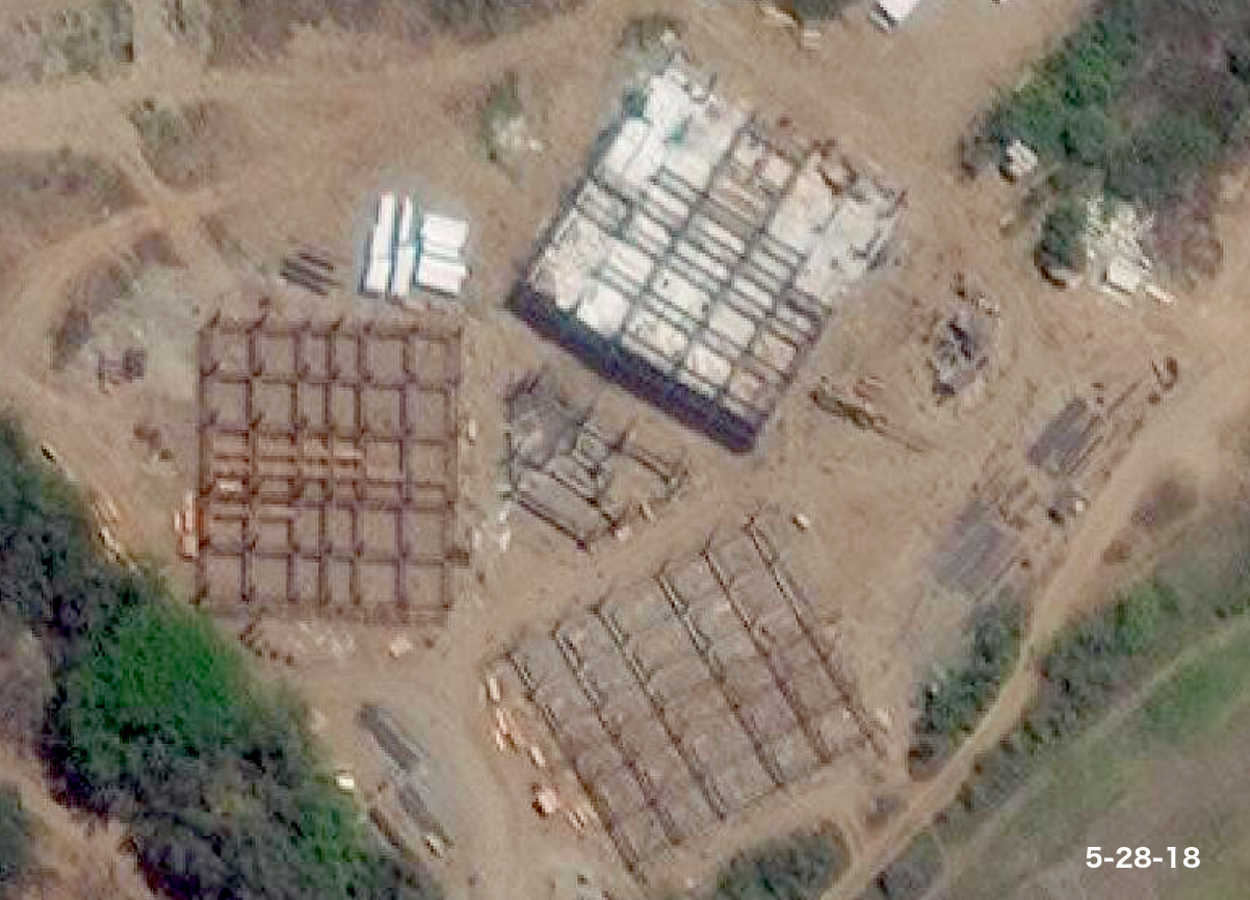 May 28, 2018 - Two more foundations appear and one building sets cement