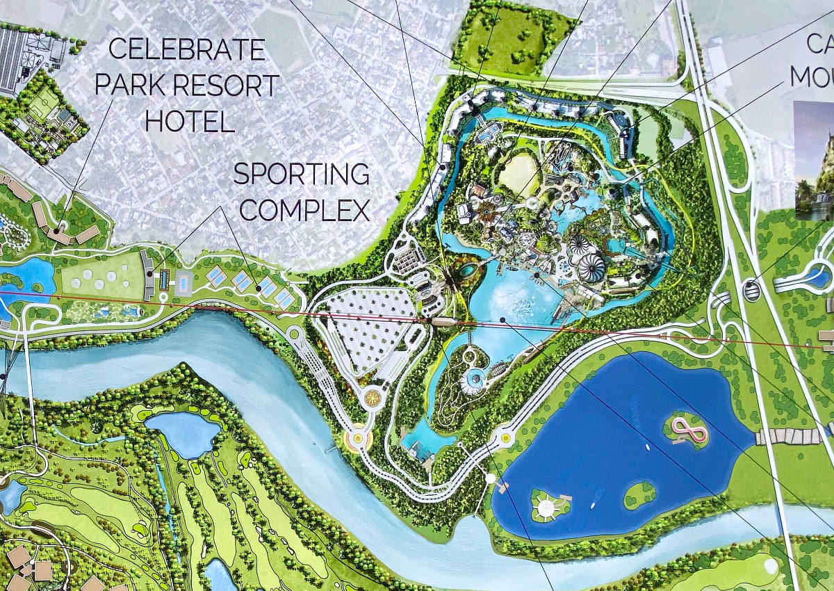 The Parks are changing. In January, 2020, the plan for the Parks at the top of the page shows a substantial parking lot on the west side of the Entertainment Zone. An entrance to the Park was supposed to be located there. The map on the Skydream station shows reduced if any parking on the west side of the Park. Also, there seem to be fewer features in the current rendition, which is not characteristic. Historically, there have been renderings that present activity and color. It does appear the map on the Skydream has been toned down. What do you think?