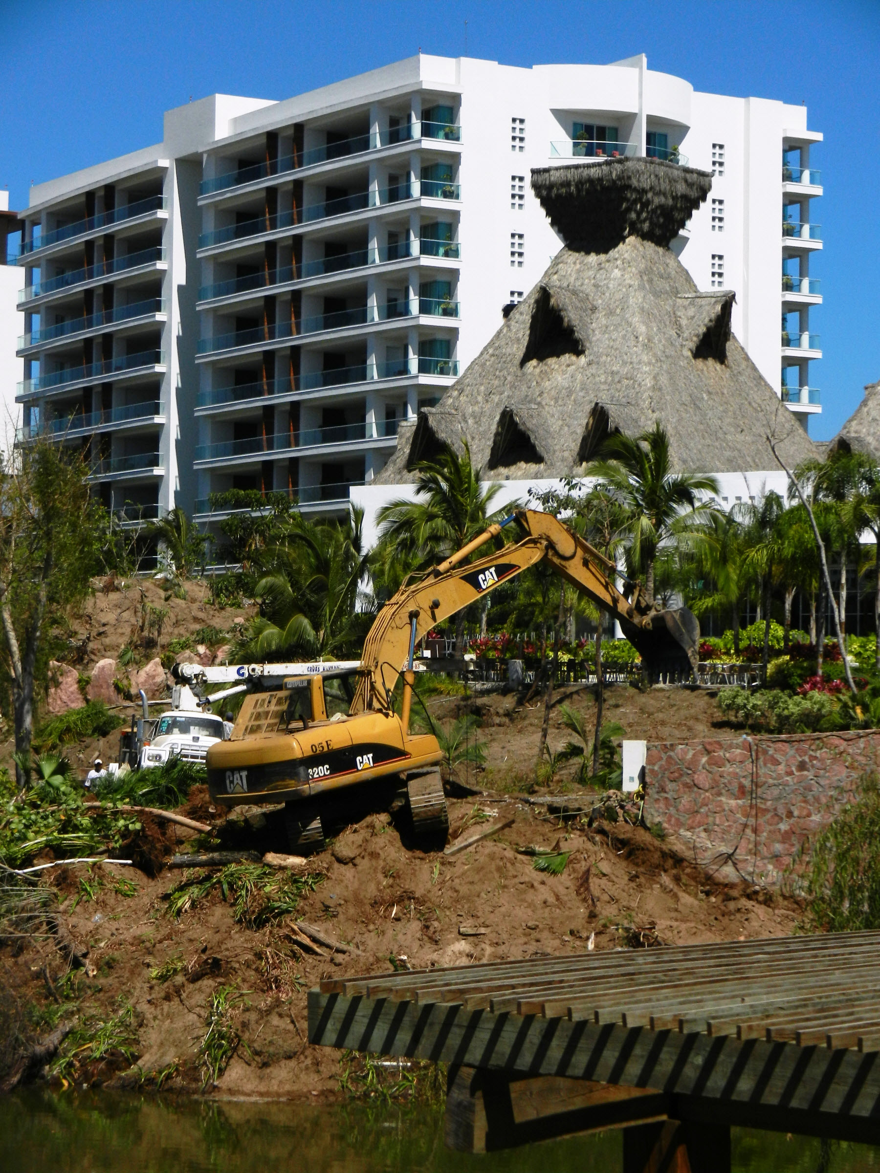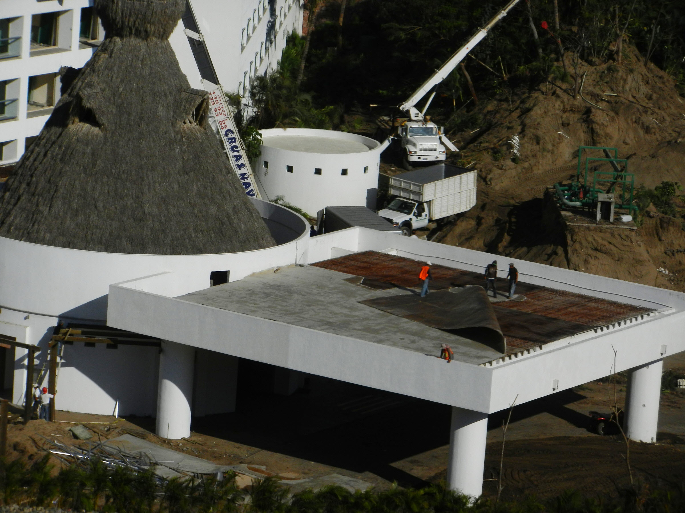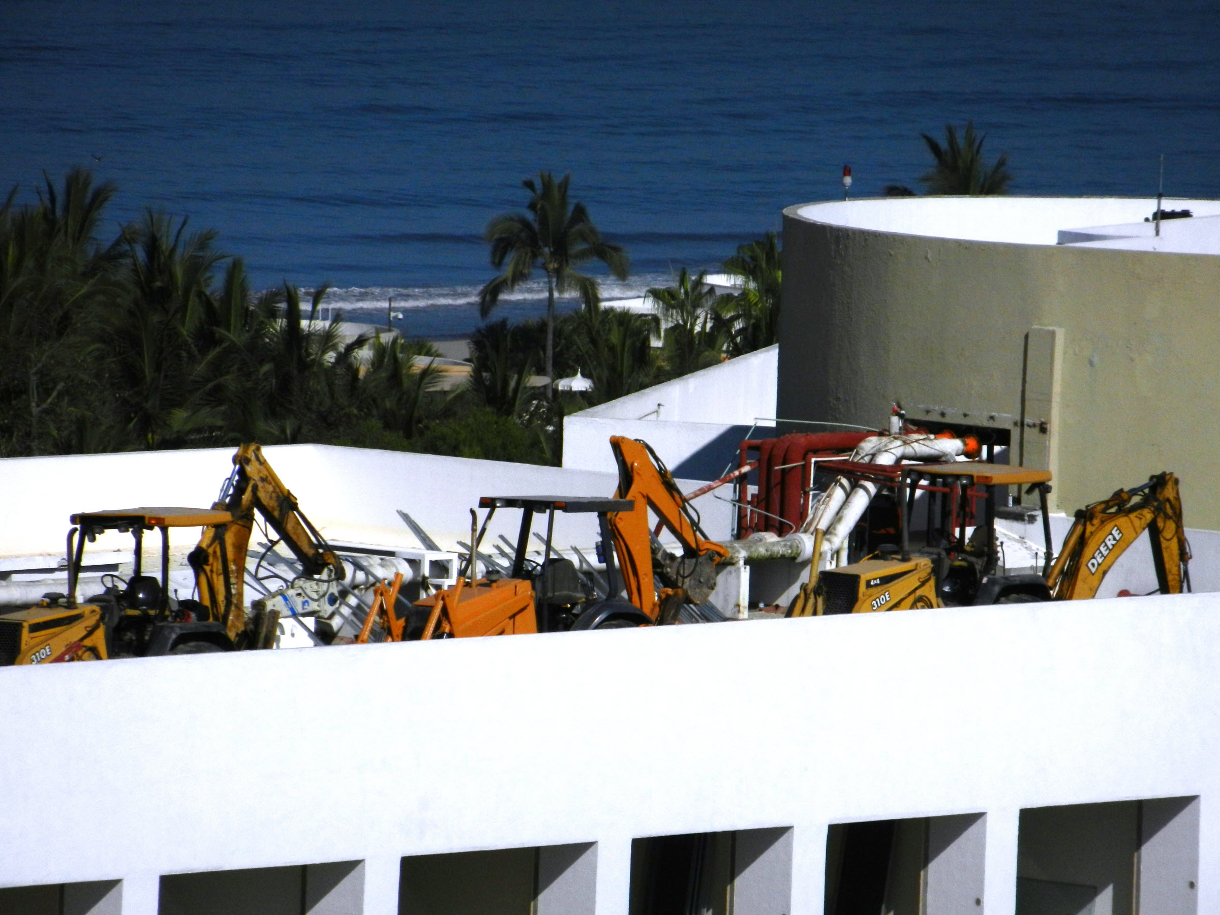 This photo shows the tractors on the Mayan Palace roof at Nuevo Vallarta, Mexico. They are there to start another demolition project. We hear many outcomes but are not certain of any. Stay tuned....