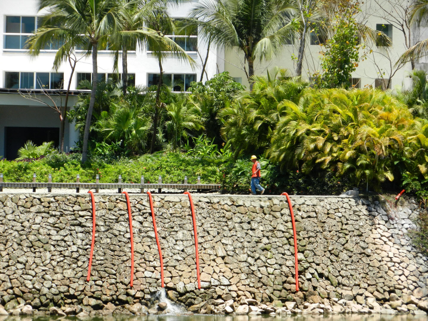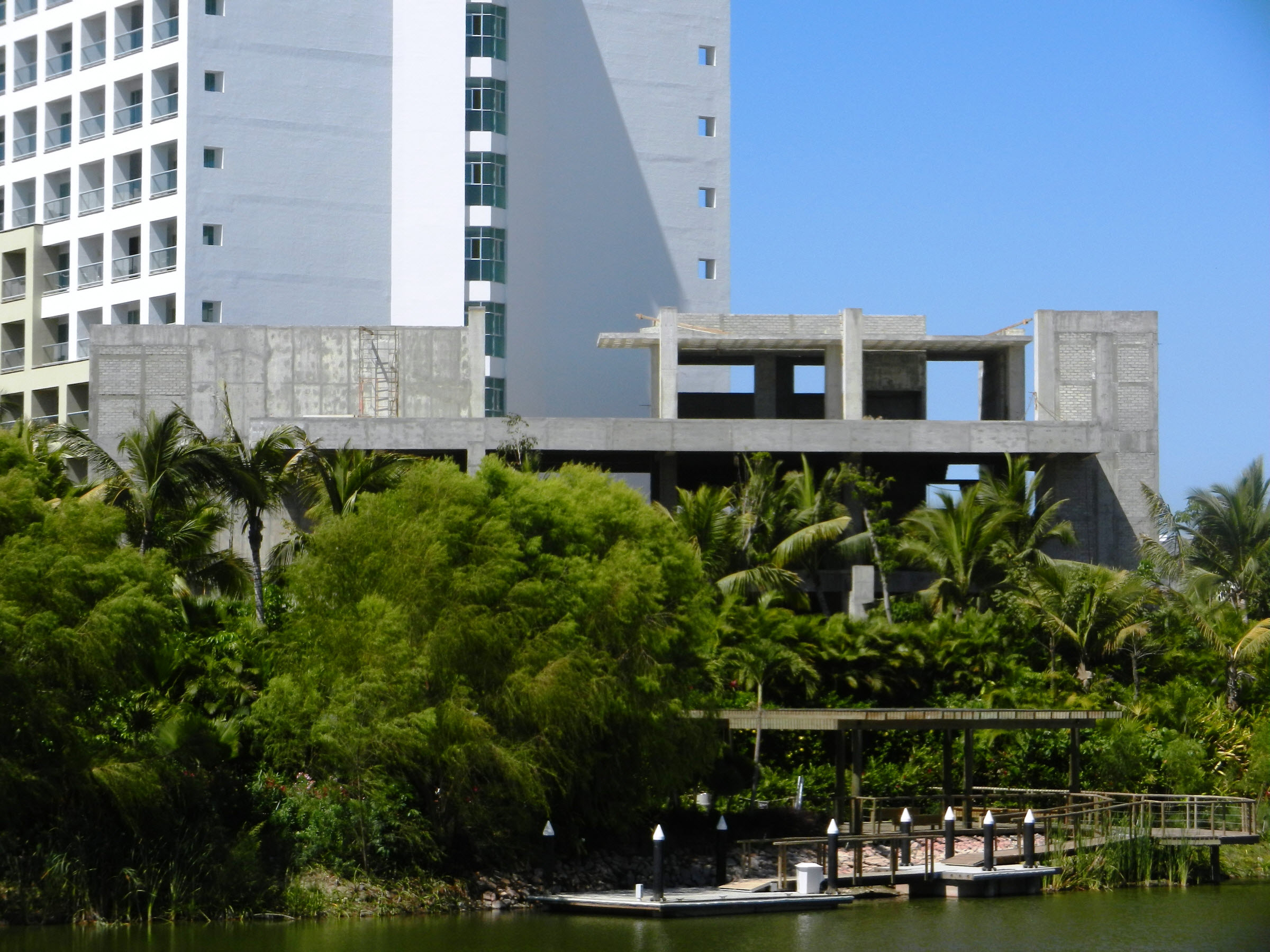 The Mayan Palace at Nuevo Vallarta, Mexico is changing. First the south tower was demolished. Now there are pumps emptying the Infinity pond, which is one of our favorites. There are five other Mayan Palace structures in the Vidanta system. The newest is in Acapulco, Mexico, and it opened in late 2010.