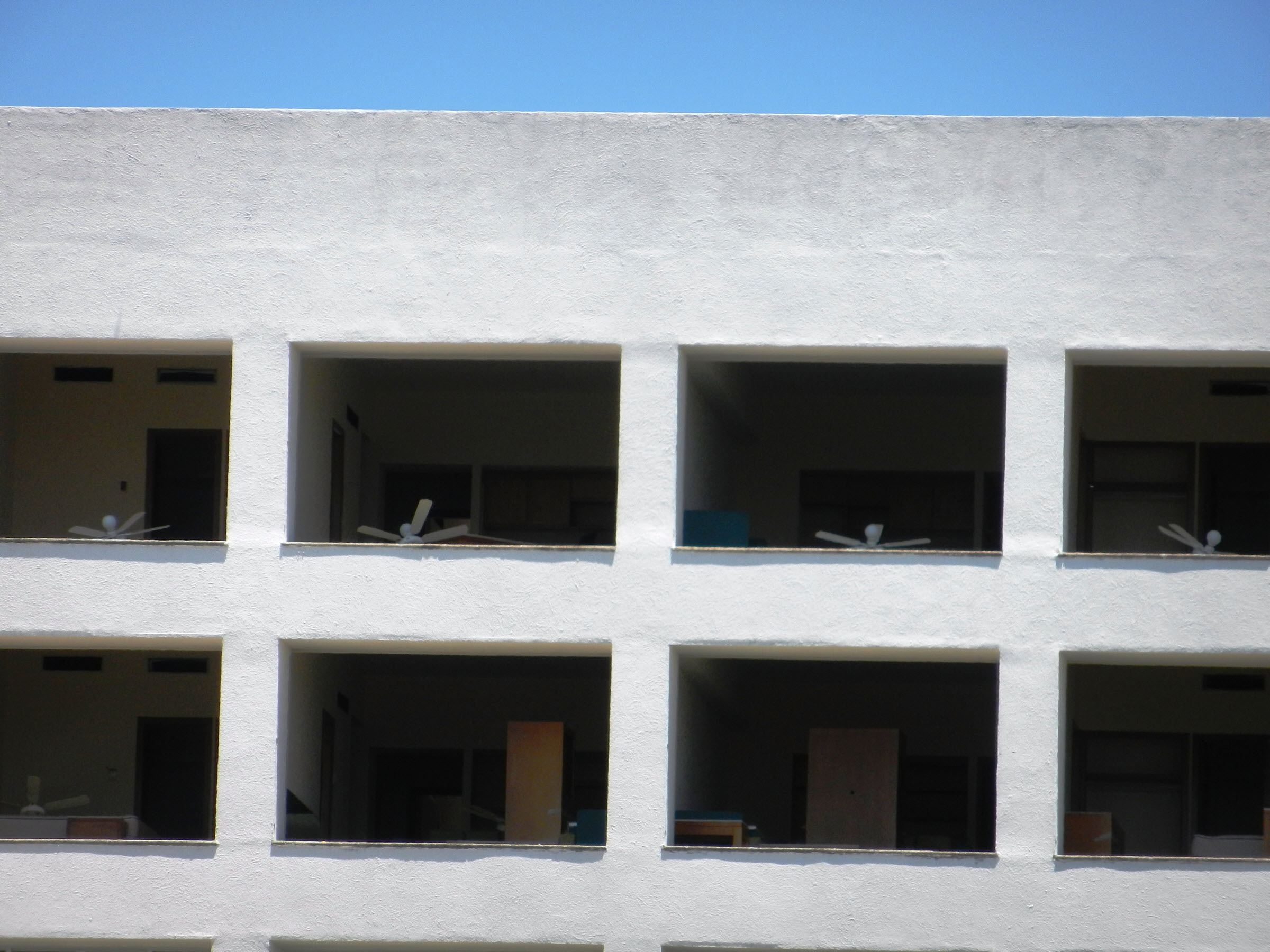 Hollow spaces are now what were comfortable and occupied units at the Mayan Palace at Nuevo Vallarta, Mexico. The building will undergo changes over the summer season. Watch what comes of it as it reopens in November, 2012.
