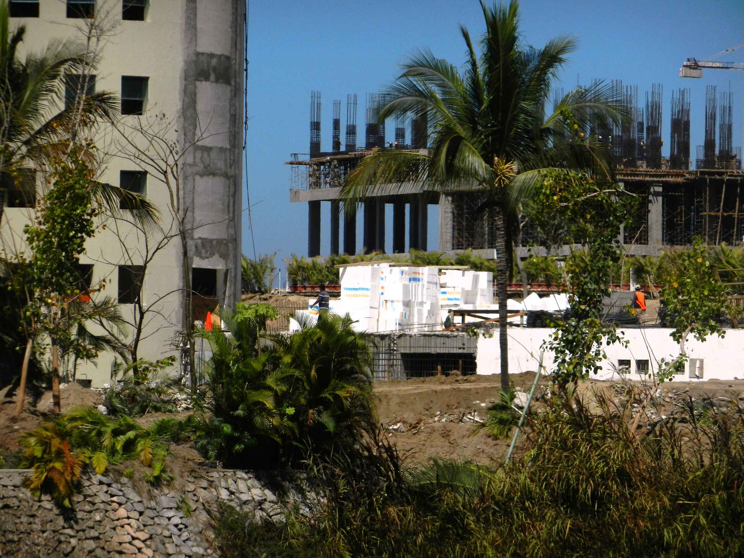 This view of the Ameca River shows the road taken by trucks and heavy equipment used to dig and transport dirt from one end of the Vidanta Mayan property at Nuevo Vallarta to another. The buildings on the right are Grand Luxxe Residence Club towers and the Punta. We hear this will become a river walk, which will be a pleasant way to walk from Towers III, IV and V to the beach.