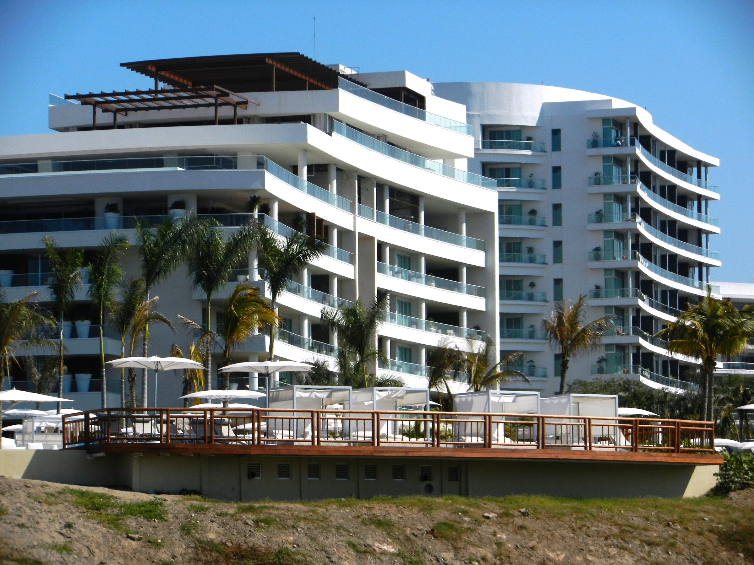 The building to the right is the Grand Bliss. The ones on the left are the Grand Mayan buildings. Between these two resort facilities in Nuevo Vallarta, Mexico is a new building that may become the sales office for the Luxxe Residences. Pure speculation, and only time will tell.