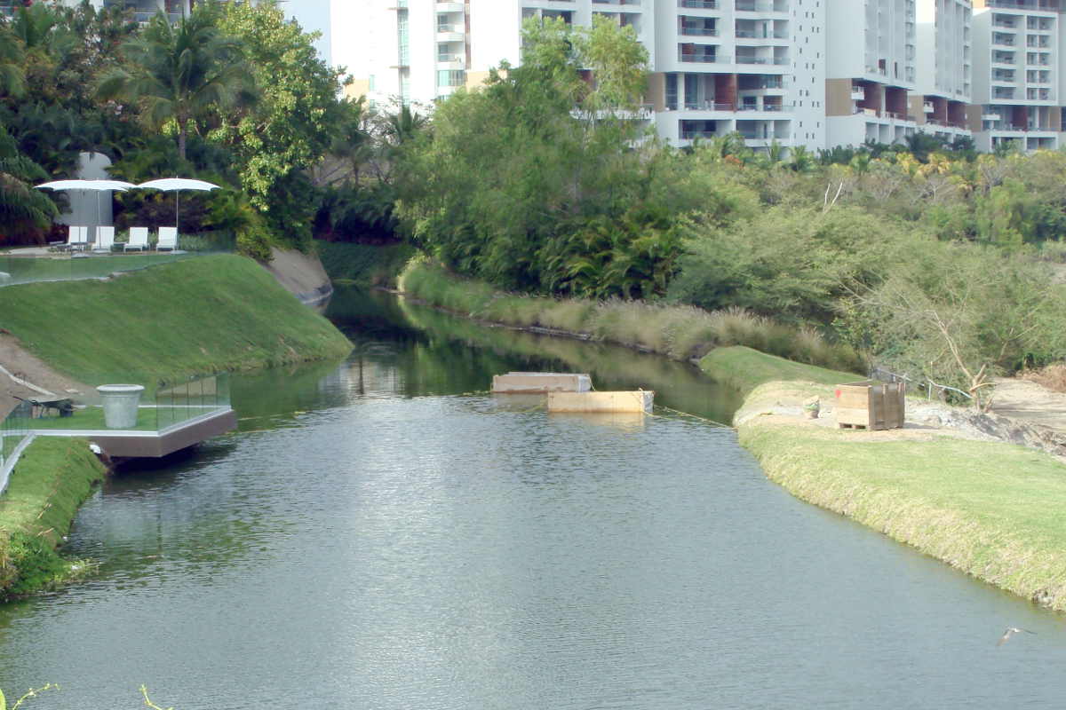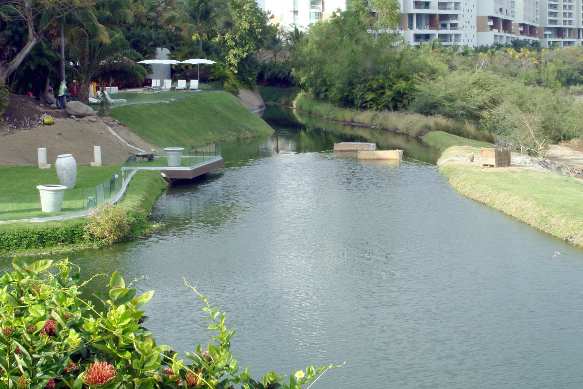 Finally, the latest site layout plans show a series of ponds north of buildings 3 and 4 – no golf course. But, the canal system appears to be contiguous from the Punta point to beside the Residence tower (but not all the way to the Spatium).