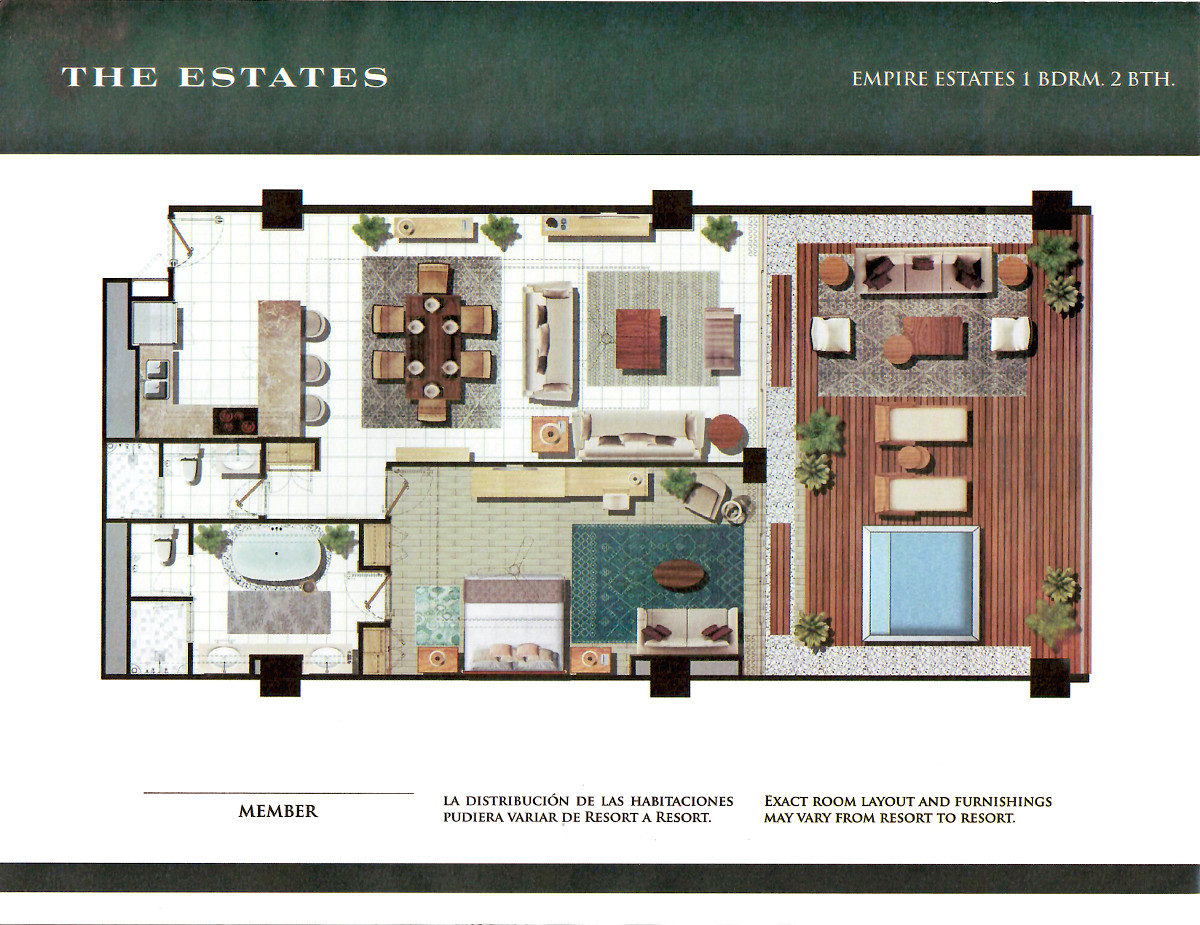 A member of the prestigious, exclusive and new Estates Division, the Empire Estates One Bedroom Suite is spacious, luxurious, open. Perfect for two or couples with two young children. Not yet available. Planned for East Cape and possibly Nuevo Nayarit in the Estates Tower. Stay tuned.