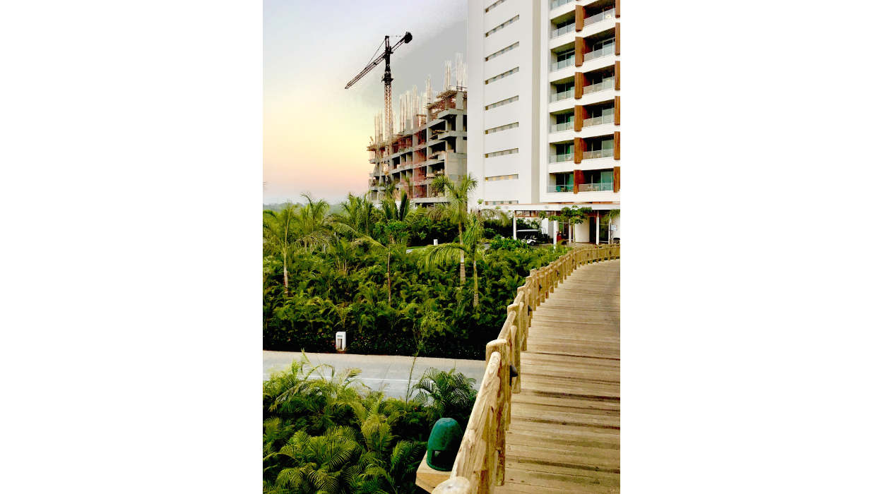 Tower Five A is open and operational. Tower Five B is four stories tall, and is not quite halfway, assuming it will be nine floors like the other towers along the river. Tower Five A has an impressive lobby area.