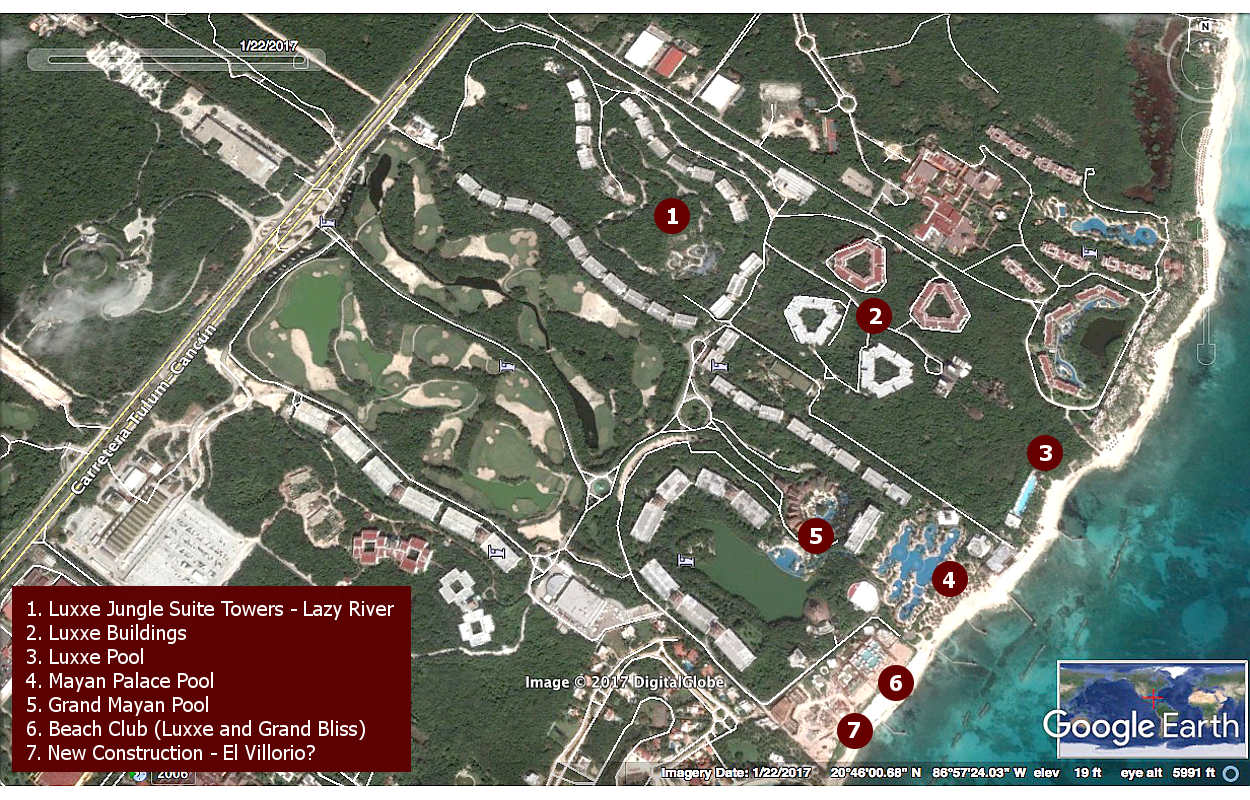 The McClures are at it again. This time they have shared photos of the "new" Beach Club.But first, we thought it would be helpful to see where features and buildings are in relation to each other. Here is a marked up Google Earth image of the property dated in January, 2017: