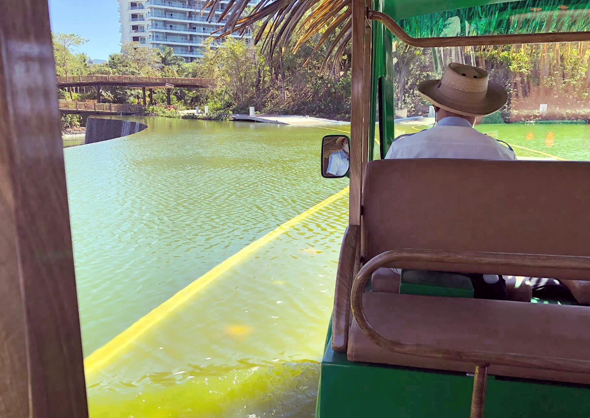 There is a new feature, which we will call a Water Shuttle. It crosses a new and submerged roadway in a new lagoon located between the Mayan Palace pool and the Grand Bliss pool. Yes, this is new.