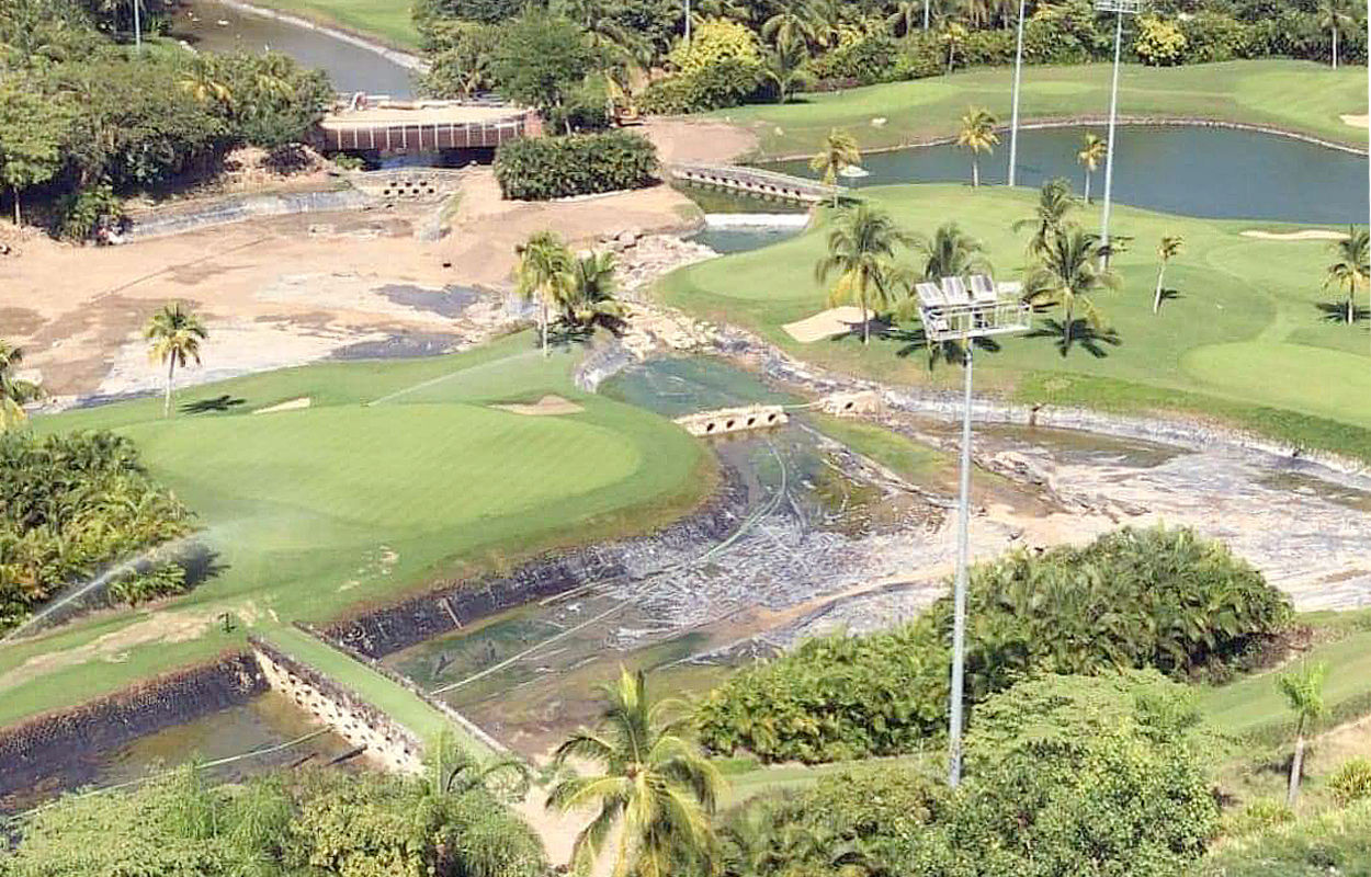 The Lakes Course is under repair as are the waterways.