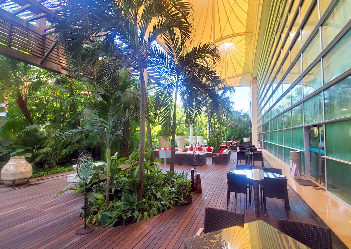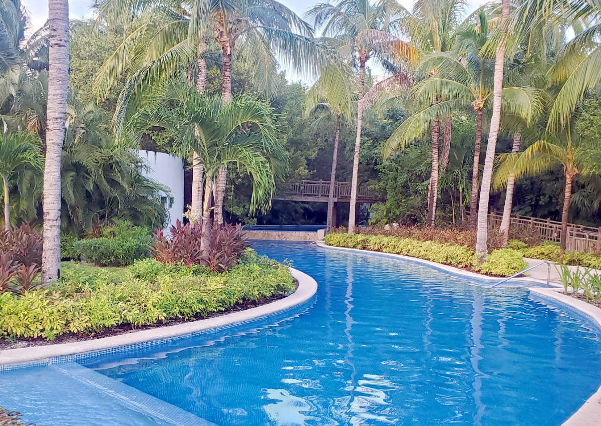 The Sanctuary is part of the Grand Mayan pool area. The partial shade offers much relief from that hot sun in the summer.