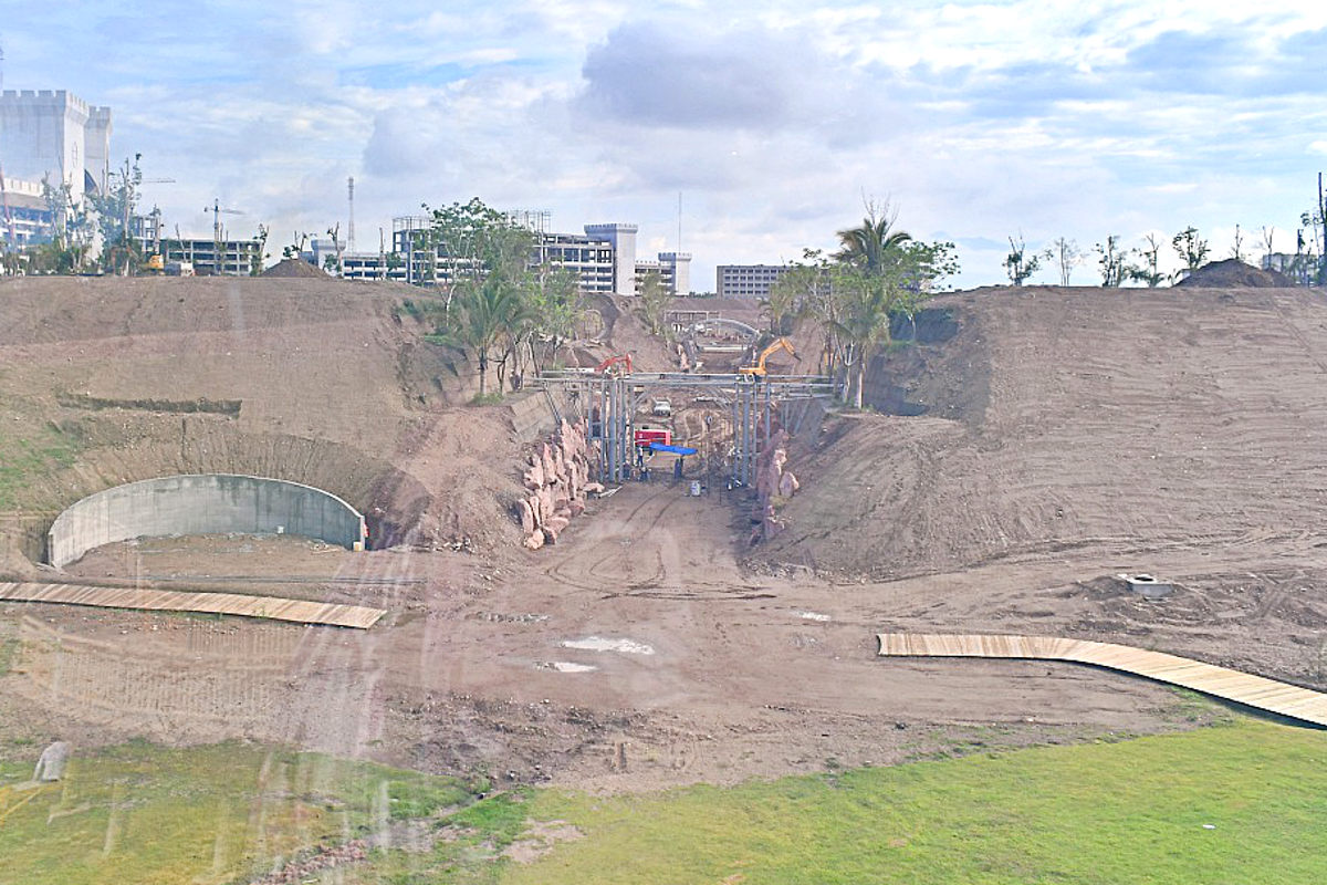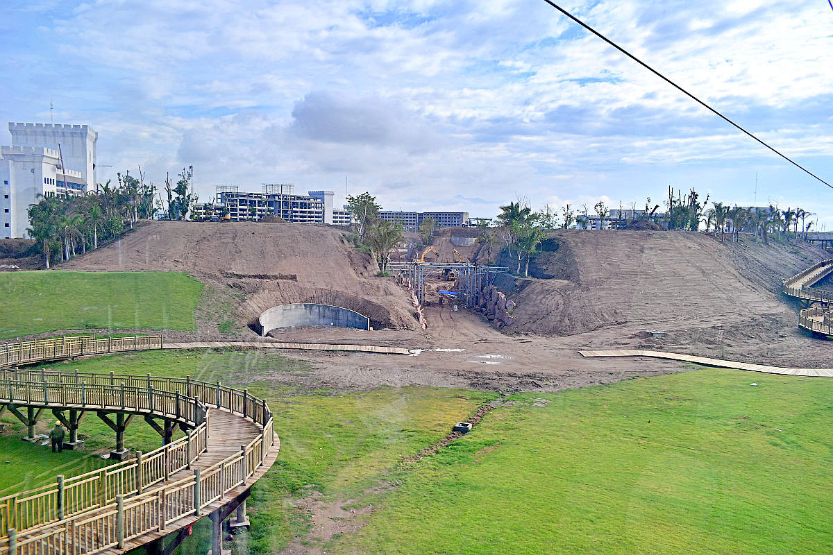 Looking down the SkyDream Path. Some of the area will be covered in water. Also, underground facilities are under construction, and these facilities could support pumps, electrical distribution and other services. Complex, for sure!