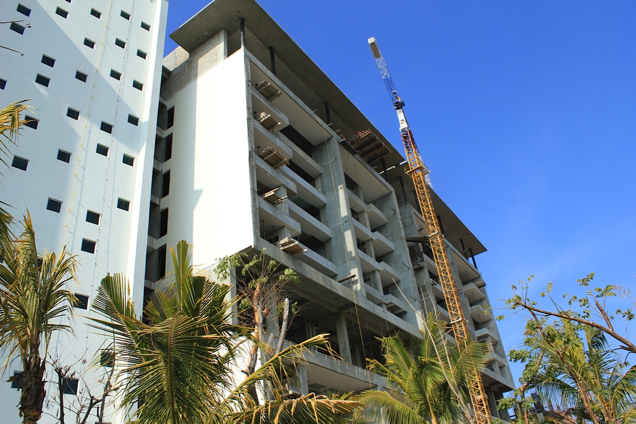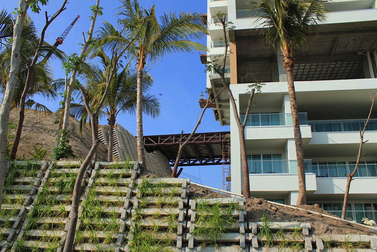 Darrin left Puerto Vallarta this afternoon, but not before sending us more photos. Enjoy his views of the Grand Luxxe Punta from the sand bar, a glimpse of the New Year Celebration set up on the beach in front of the Havana Moon, images of the ramp to and of the 4th floor of Grand Luxxe Tower III A and Grand Luxxe Tower III B before leaving the resort.
