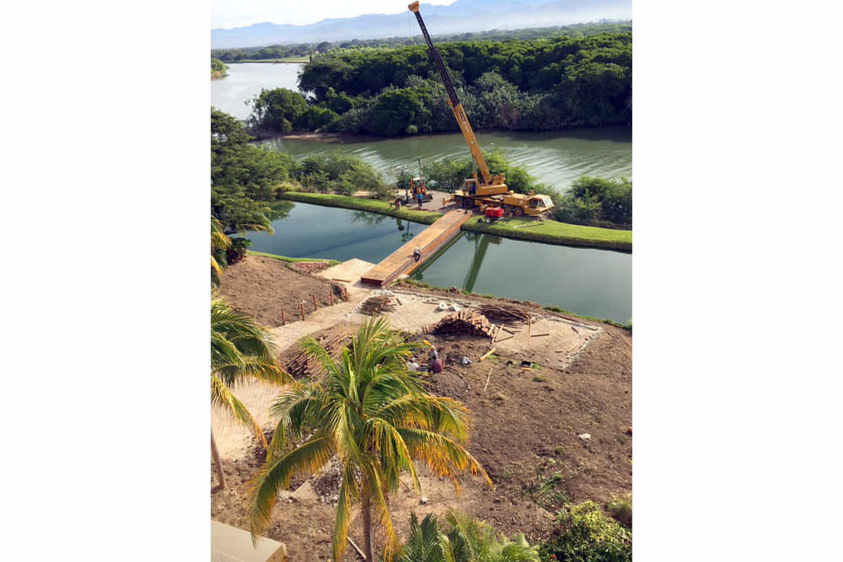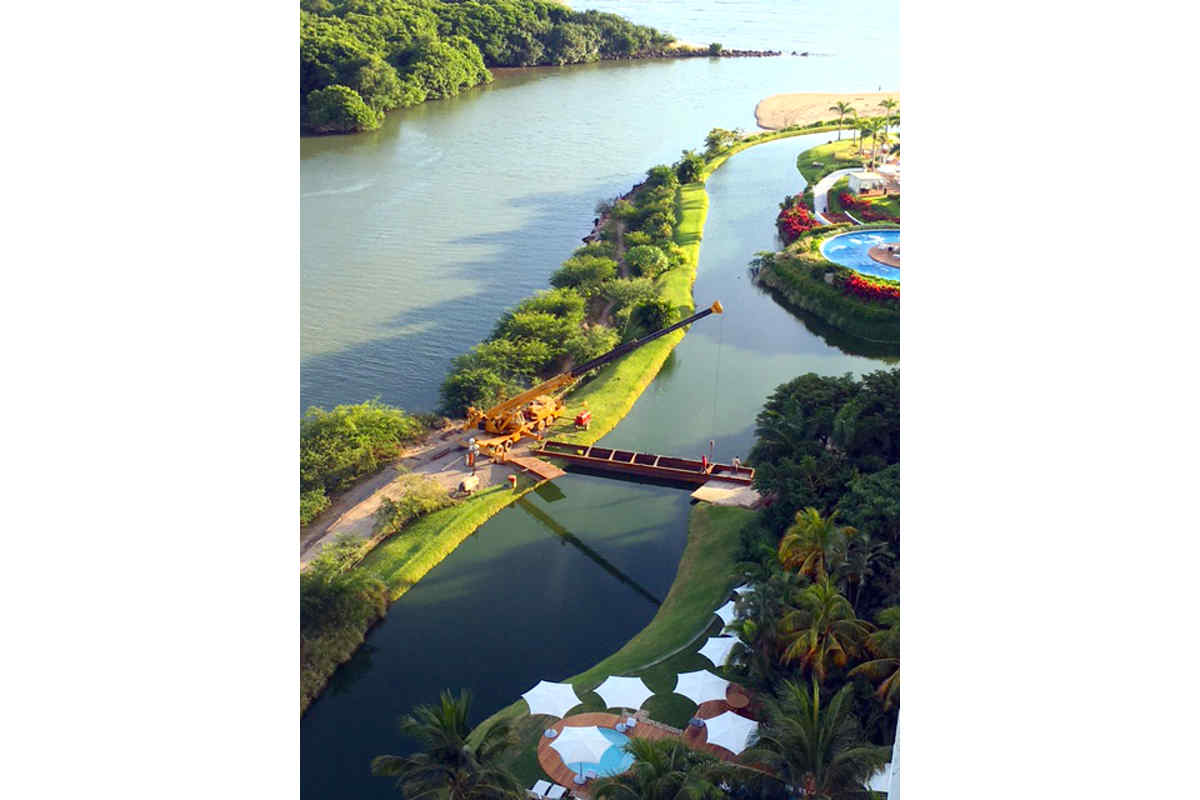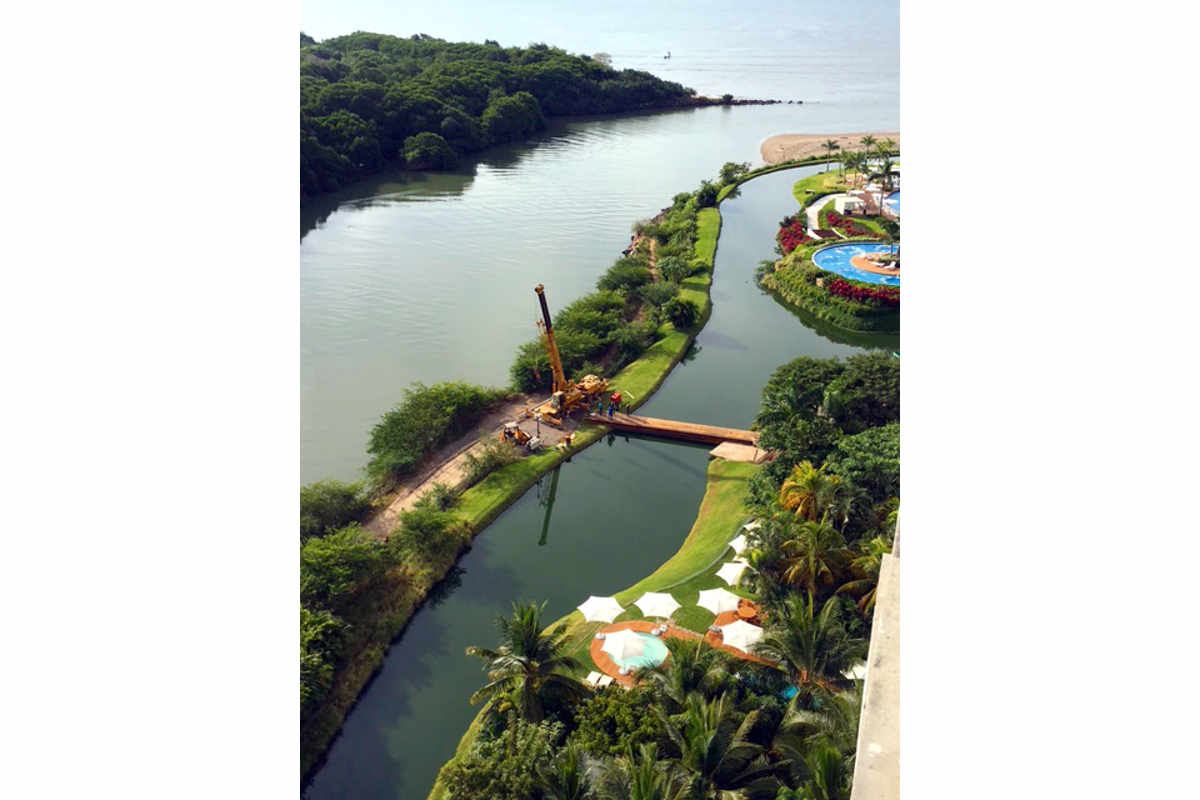 Boots on the Ground is in Nuevo Vallarta now in the Punta Tower for a few more days. He alerted us to a stange development: Staff is constructing a new bridge that crosses the canal surrounding the Punta Pools. Where will this bridge go? Who will use it? How long will it be in place? Who knows? Only time will tell....