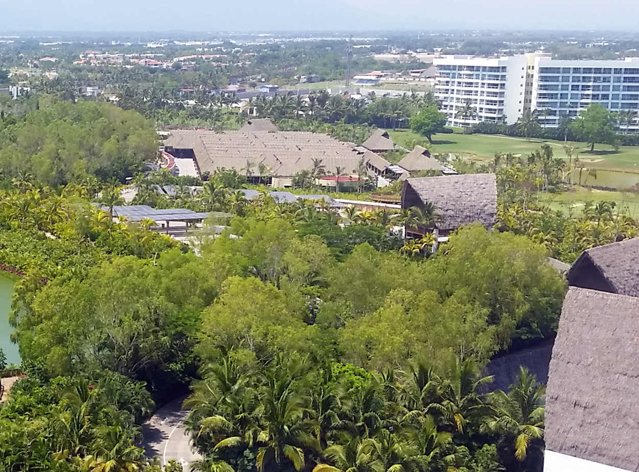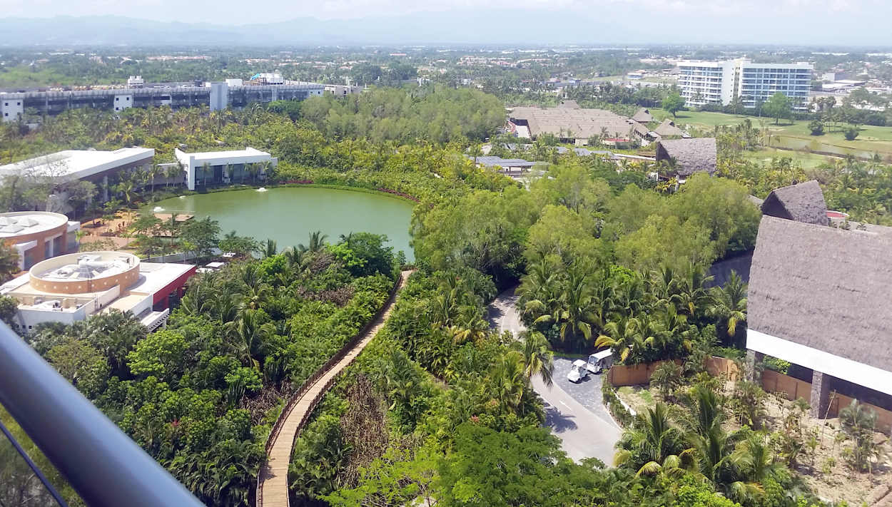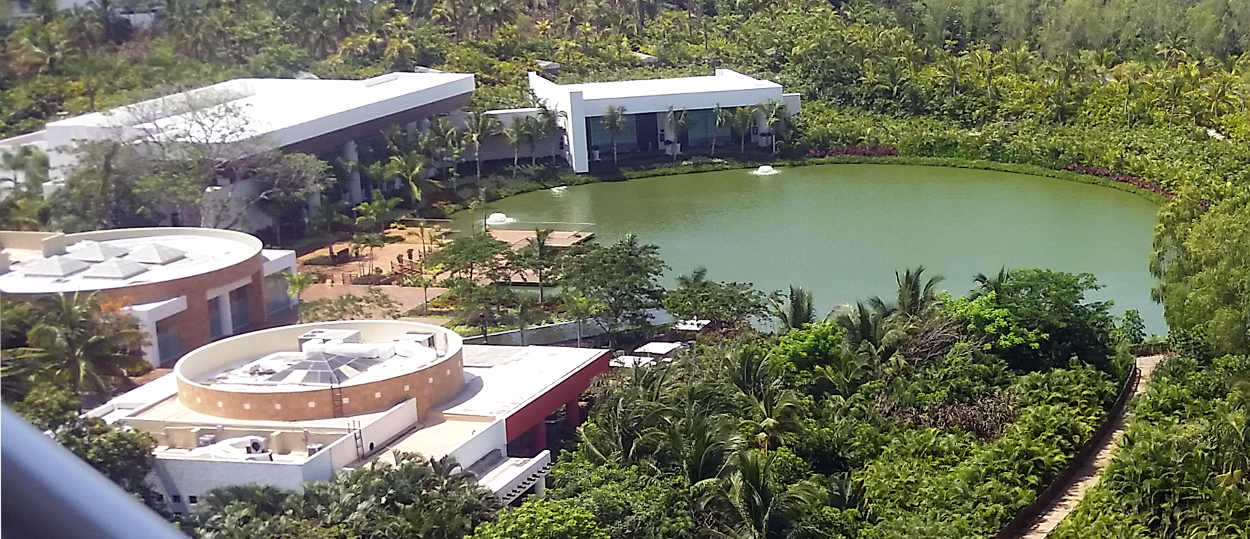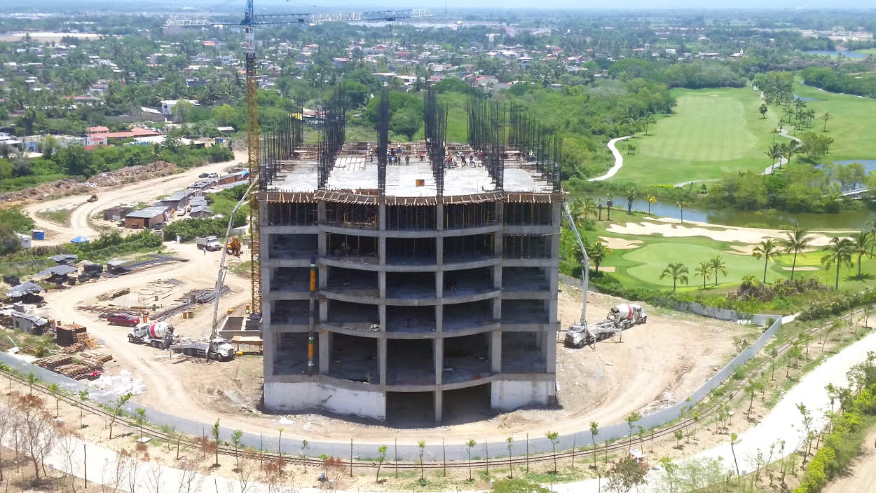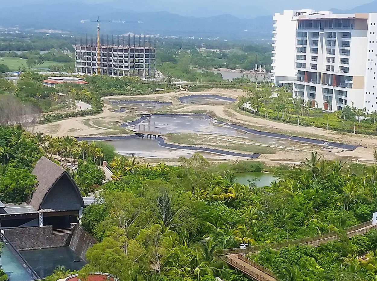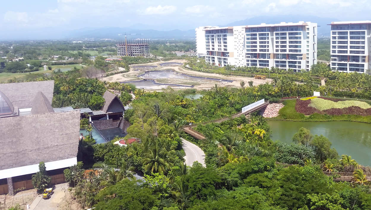 OVERVIEW FROM GRAND BLISS SALES DECK. The view from the Grand Bliss Sales Deck is terrific, as always, and show off some interesting changes. First is the very large entry area that is now very obvious. Next, the original entry area does not appear to be in use. Note the cobble stones in the front parking area of the Santuario appears to be planted. What will the Santuario become, if anything different.
