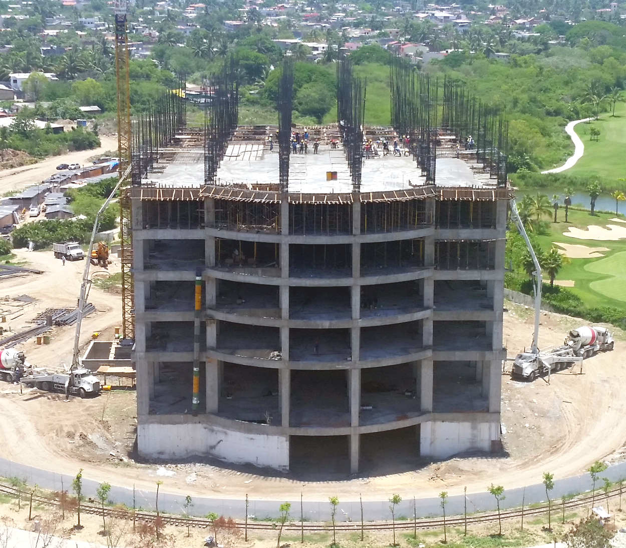 TOWER FIVE HAS FIVE FLOORS TO GO AND THE SPATIUM IS COMPLETE. Construction of Tower Five is moving along rapidly. Many workers are on the job, trying to meet their deadline of a November, 2016 opening. We are told Tower Five is but one of four buildings that ultimately will make up a structure called the Butterfly Building.