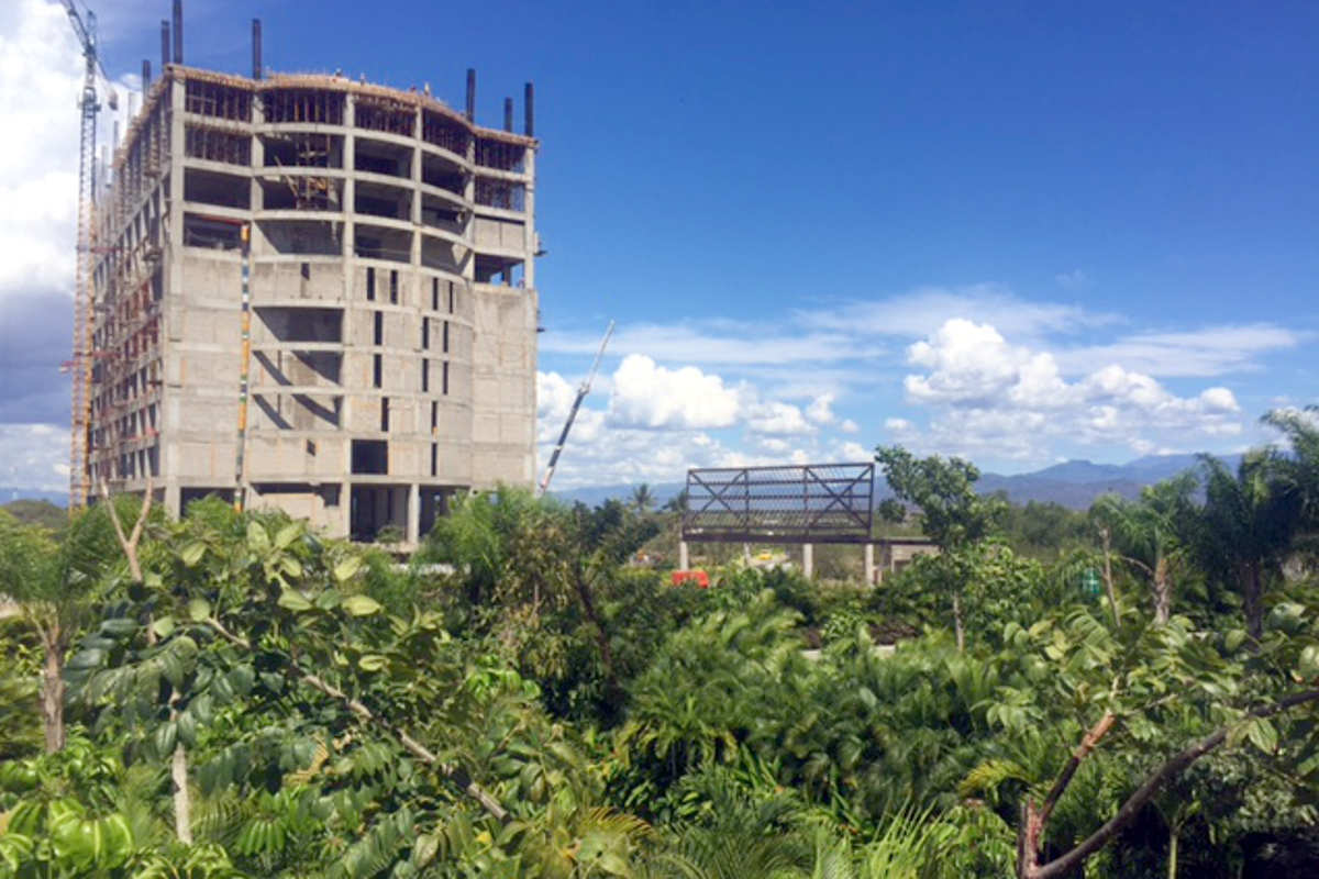 Tower 5A as seen from the walkway near the Residence Tower and SPA Towers. Tower 5A will have 10 floors, with a large swimming pool on the 10th floor. It is clear now that the two story, Residence 1 BR Lofts occupy the 6th and 7th floors and 8th and 9th floors. Luxxe Studio Lofts will be located on floors One through Five. Interesting to see a new structure that looks like a taxi stand on the right side of the building.