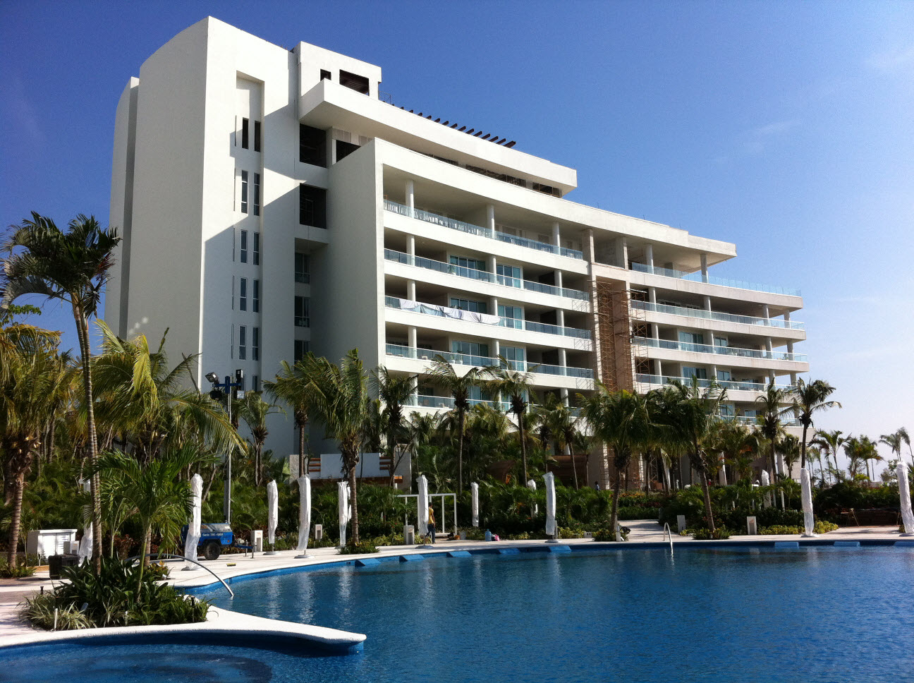 Management would like to open the Grand Luxxe Punta at Nuevo Vallarta, Mexico sometime in November, 2011. This photo was taken with a phone camera by KMACKERMANN. It shows the progress being made.