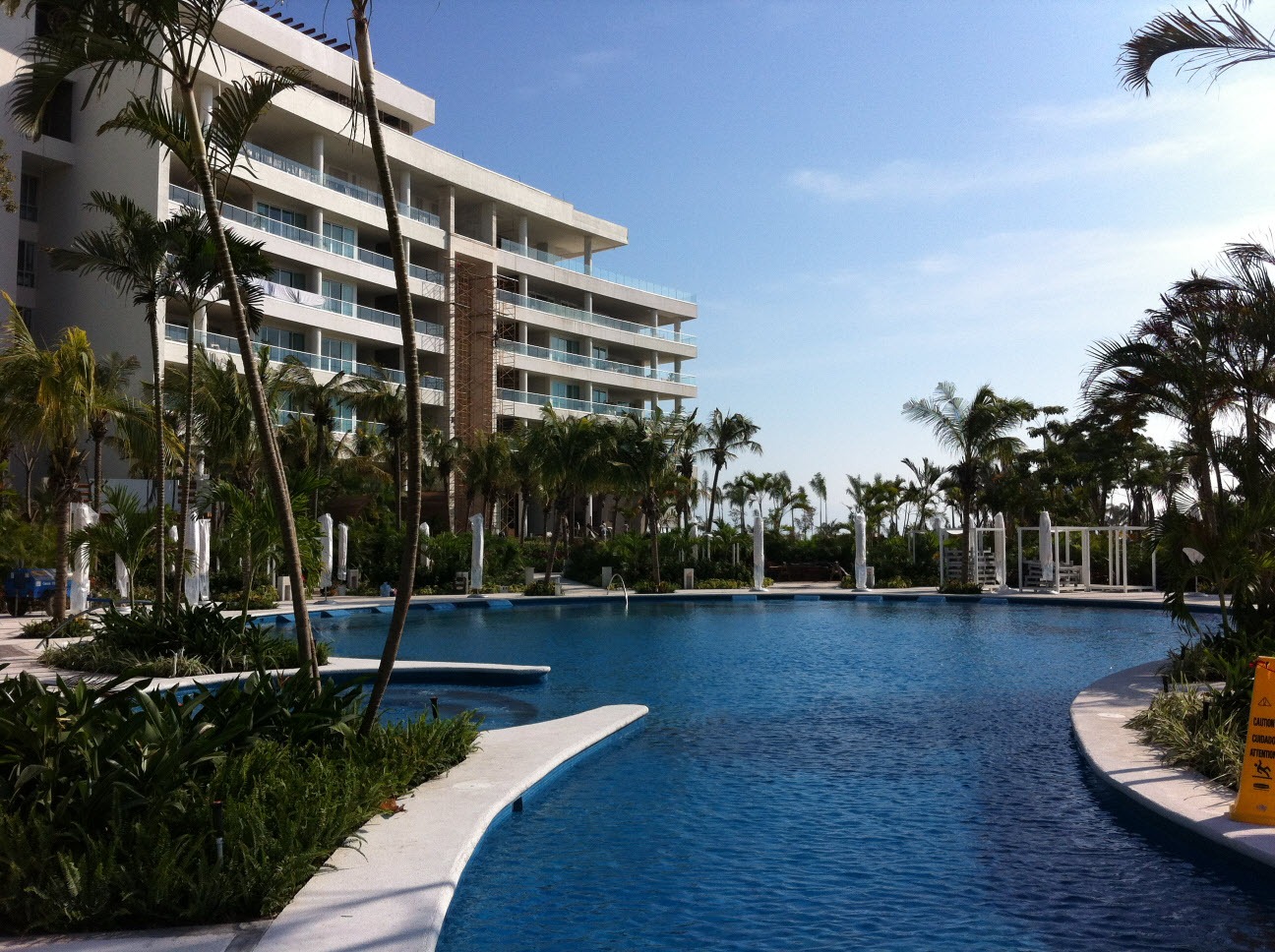 Development of the Grand Luxxe Pools in Nuevo Vallarta, Mexico if far along. The swimming pools extend from the Grand Luxxe Tower I to the front of the Grand Luxxe Punta. Definitely an attractive addition.