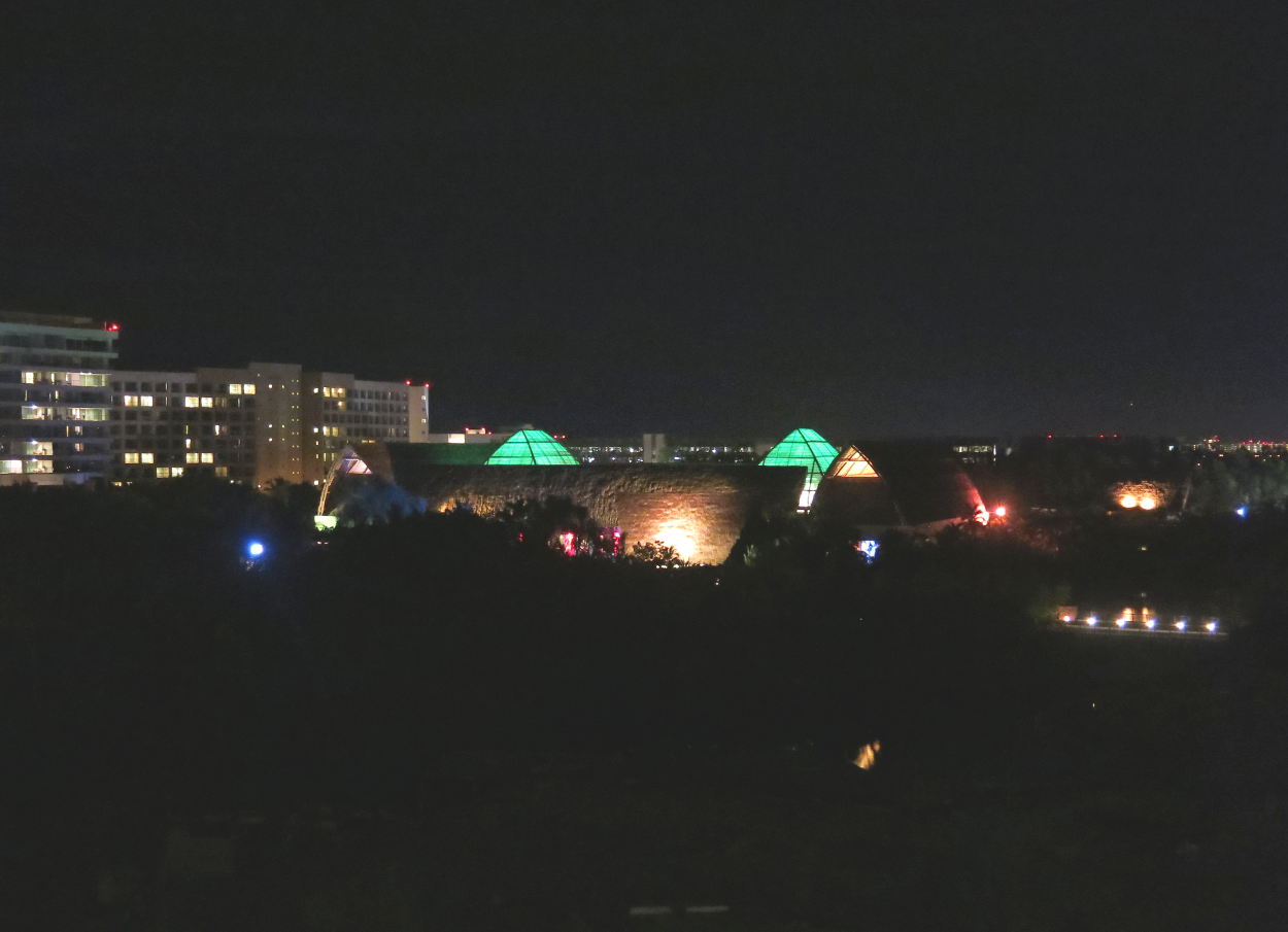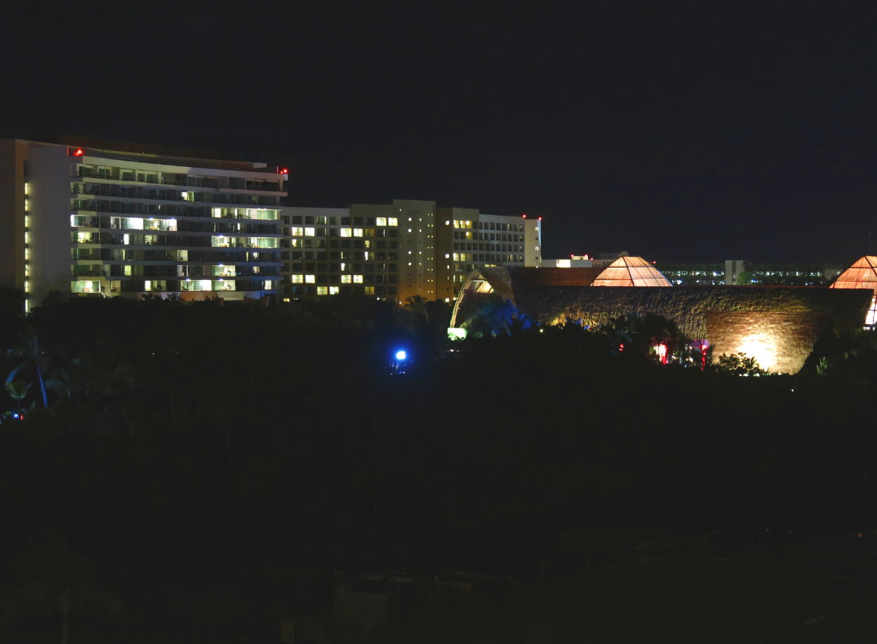 Views from the Loft are beautiful. Although music is audible, it did not annoy us. We spent the first night sitting on the deck enjoying the balmy evening, glittering lights and the sounds coming from the Santuario. Later, when we closed up the doors and turned out the lights, we could hear only the very faint hiss of the very efficient air conditioning.Following are images of what we enjoyed: