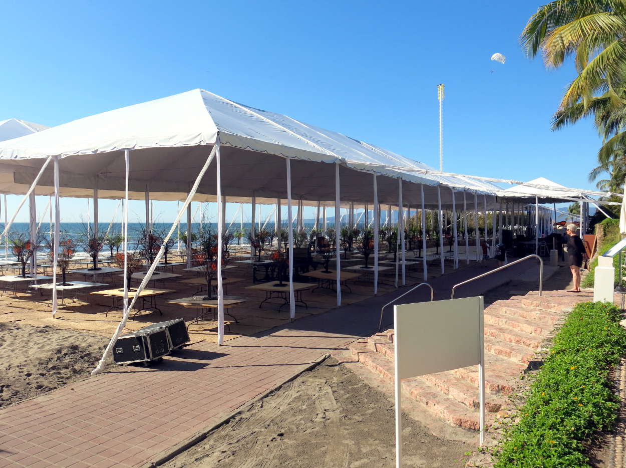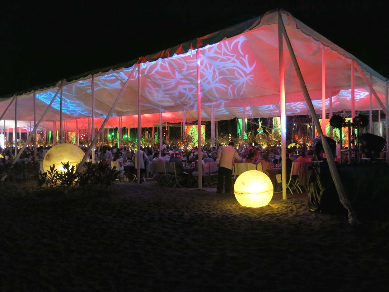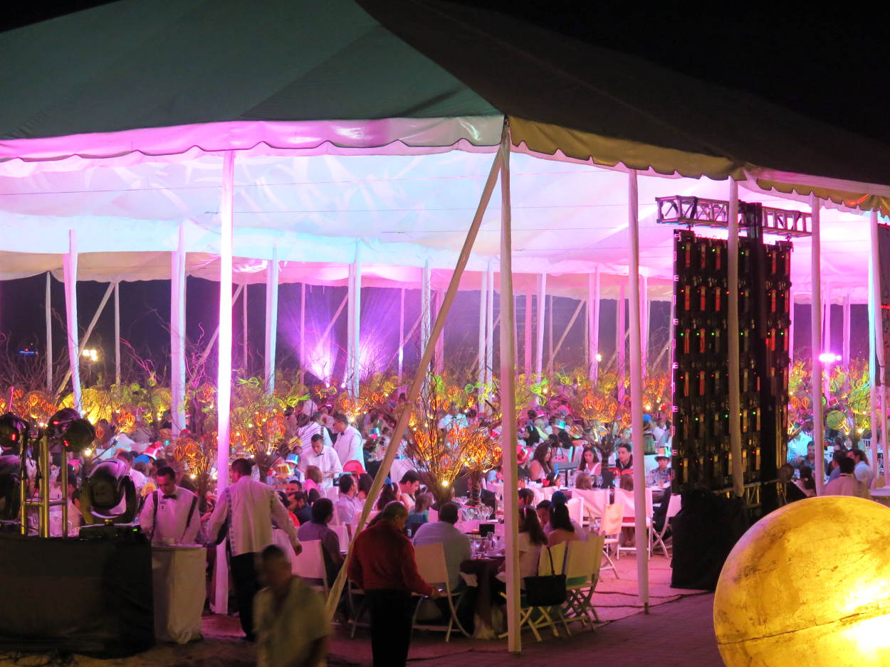 The New Year's Eve celebration was enjoyed by hundreds. A huge open sided tent contained what looked like 80 tables for ten. A center stage offered a place for entertainers to show their stuff, and three big screens televised their artistry so everyone could see. It was truly a great place for a celebration, and the guests who participated were treated royally!
