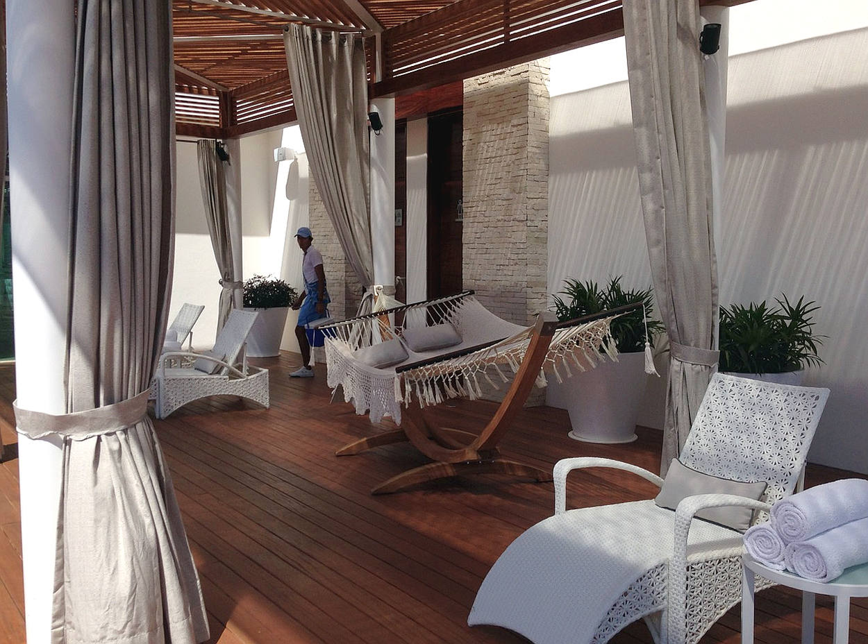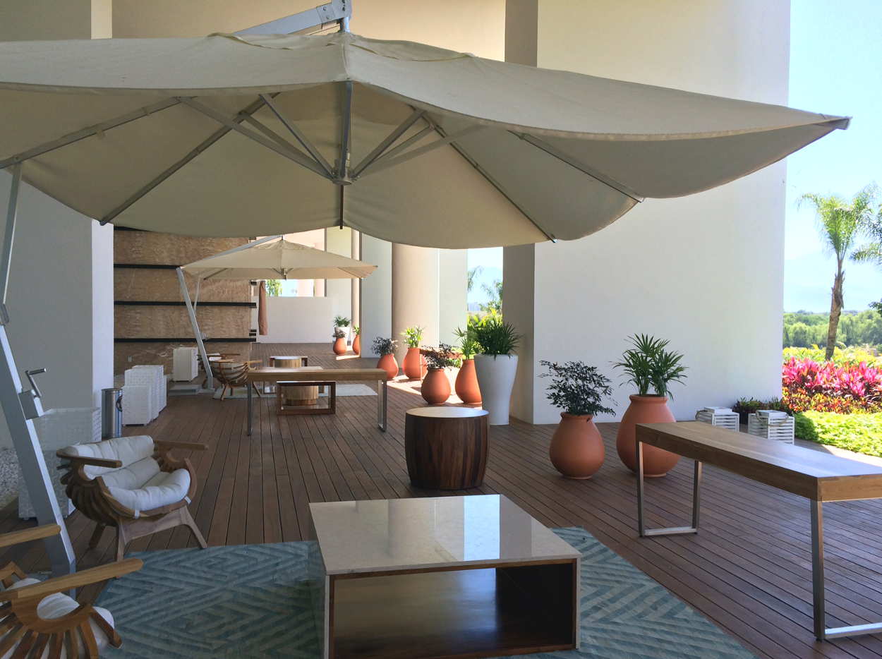 The west side of the Residence Tower out door seating area.