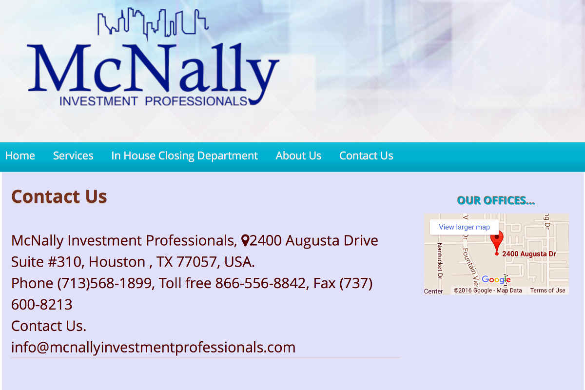 - Statement on the website: “With experience dating back to 2002, McNally Investment Professionals offers its services through direct operations and a network of qualified agents across the United States as well as internationally.”