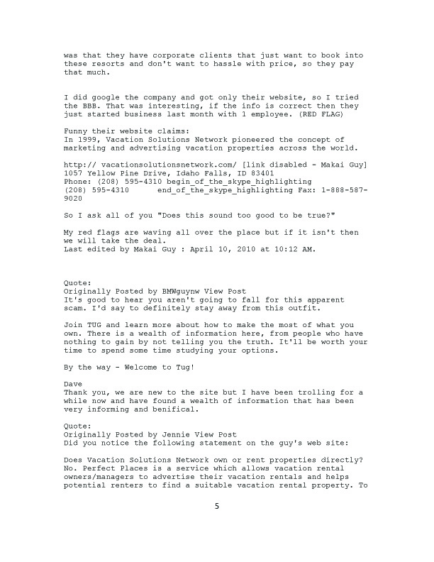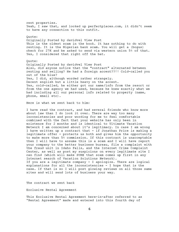 We decided to make a few inquiries ourselves and found on TUG (Timeshare Users Group) a post by ZLady. After reading her post, we asked for and received her permission to post her experience with and contract from Vacation Solutions Network.