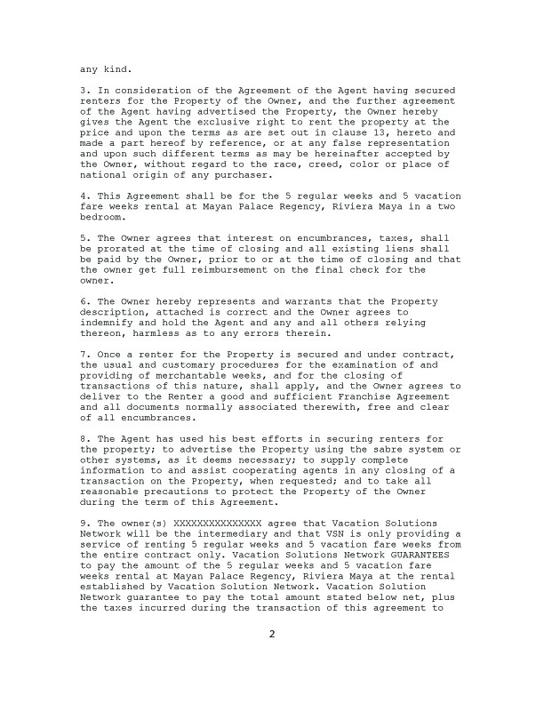 This offer is for 5 RWeeks and 5 VFWeeks at the Riviera Maya Mayan Palace Regency. Vacation Solutions Nework promises to pay $2,700 per week for a total of $27,000.