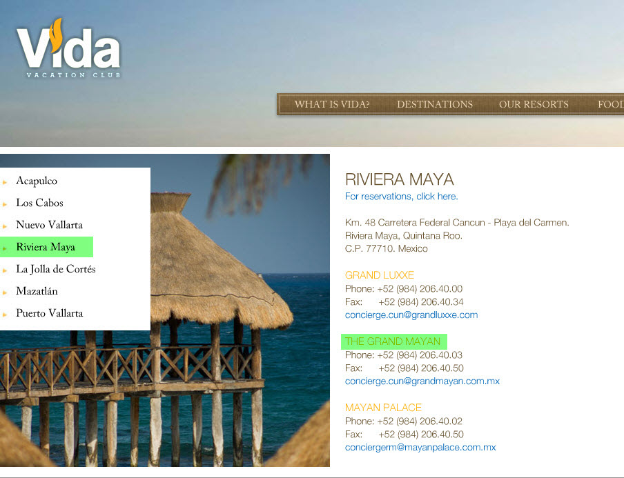 To contact a resort or concierge directly, click on the name of the resort you are trying to reach that is located on the property you are interested in to see a downloadable file that contains the contact information for that specific resort.