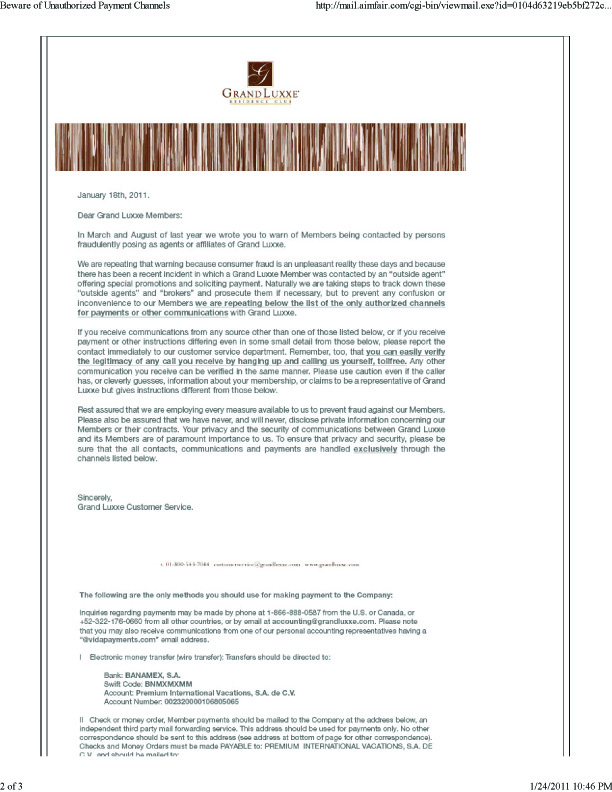We read that there will be 10,000 or so "Baby Boomers" coming of age each day after January 1, 2011 for the next 12 to 15 years. Coming of age means retiring. Wow!Our important take away from the article is scams will likely be on the rise. In fact, the Grand Luxxe Residence Club issued a warning on January 18. This is the second in about six months. It is a problem.