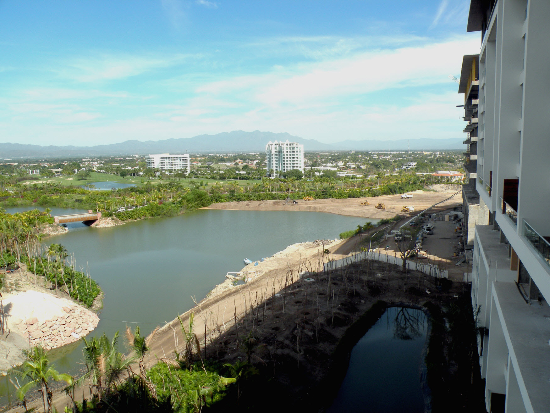 DescriptionThe land that is west of the Brio SPA at the Vidanta property in Nuevo Vallarta, is growing and the lagoon is shrinking. In this photo, the lagoon extends to the east edge of Grand Luxxe Tower IV A. By February 2, the lagoon has receded to nearly the middle of that tower. New golf course?