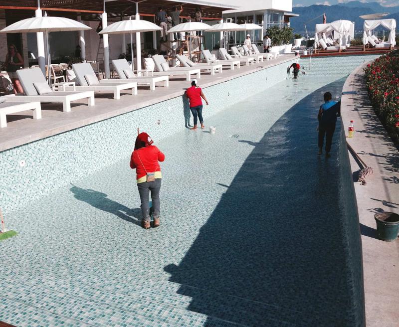 The Residence Tower at the Grand Luxxe in Nuevo Vallarta, Mexico has a Rooftop Pool and Restaurant that should be very popular. This gallery shows the progress of the pool as it makes its way to opening.