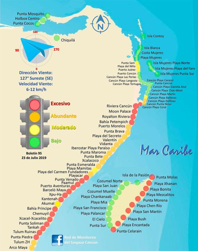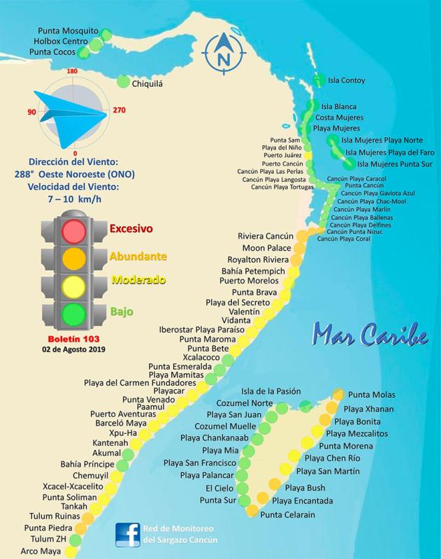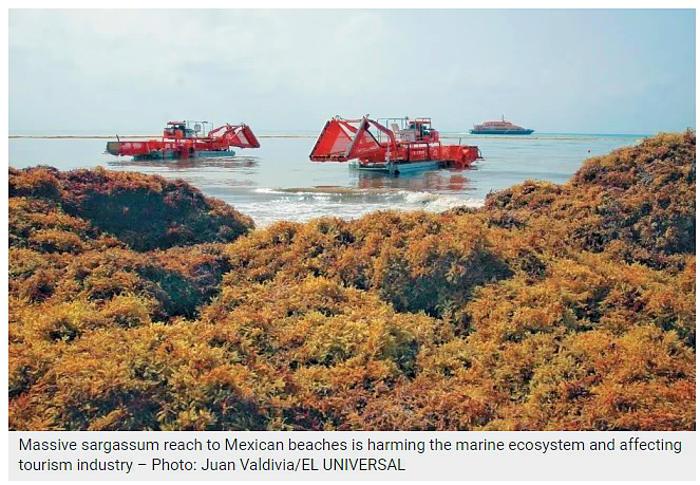 Images in this gallery show Sargassum accumulations in maps of Riviera Maya, Mexico. One is as of July 24, 2019 and the other is as of August 2, 2019. Sargassum buildup is shrinking because of favorable winds and currents along the East Coast of Mexico.