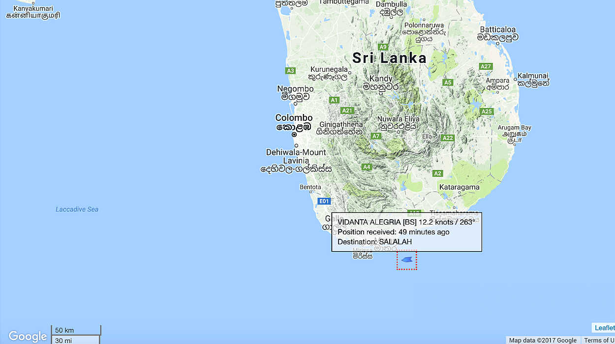 Vidanta Alegria is now off the southern coast of Sri Lanka: