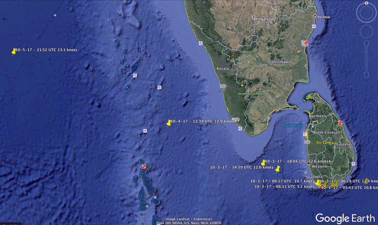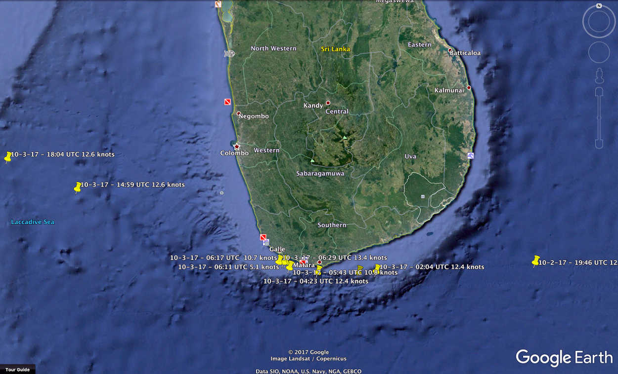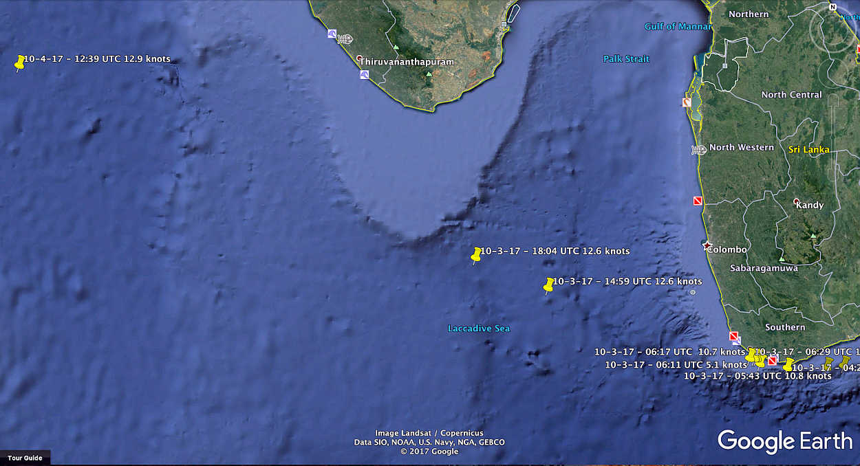 Vidanta Alegria has left the west coast of Sri Lanka, is in the Laccadive Sea and heading toward the Arabian Sea: