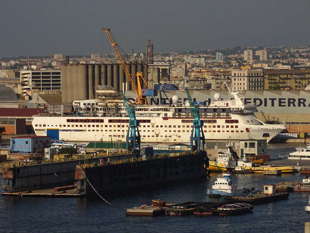 The ship was then moved to a shipyard in Spain, and has since been relocated again, this time to a yard in Naples.