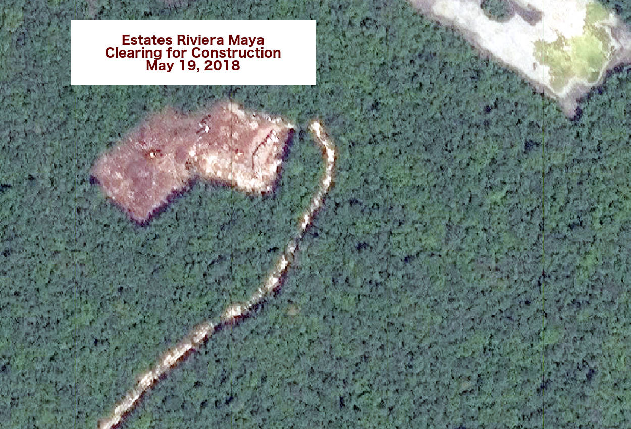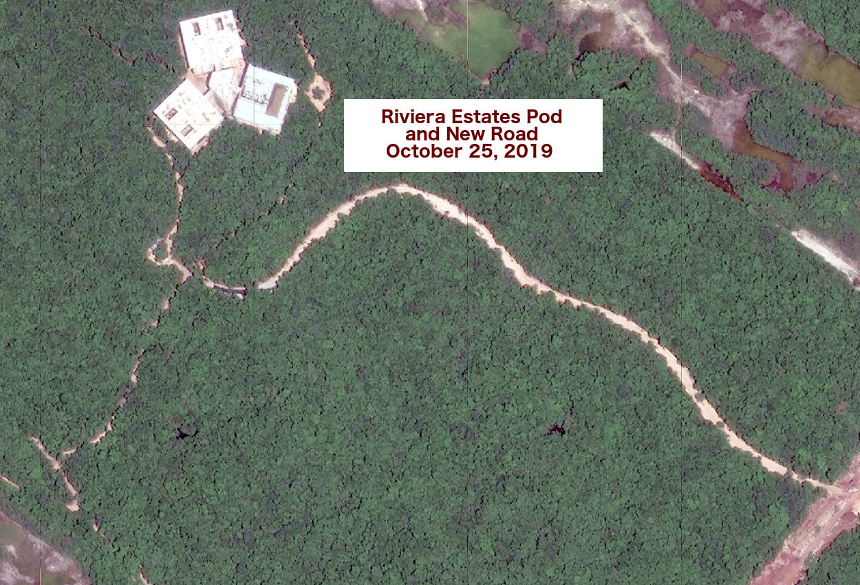Estates Riviera Maya is located in the jungle about 1/2 mile west of the Joya Theater. The structure there is a "Pod" with the same demensions as the "Pod" in Jalisco/Nayarit. A new roadway has appeared in 2019. Clearing for additional Pods has not commenced as of November 10, 2019.