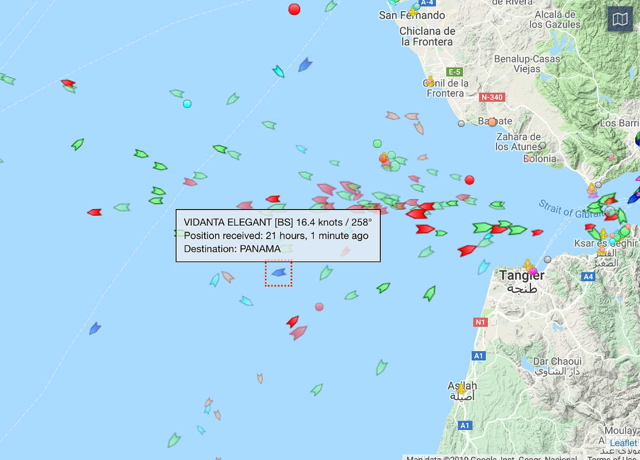 Marinetraffic.com last shows the Vidanta Elegant off the coast of Morocco. The estimated arrival date and time in Panama is January 26, 2019 at 7 AM.