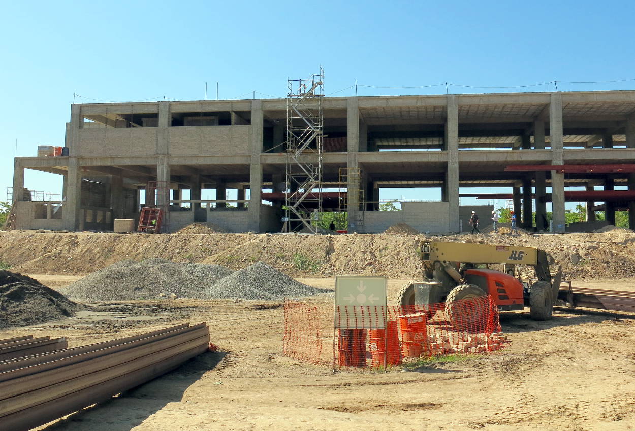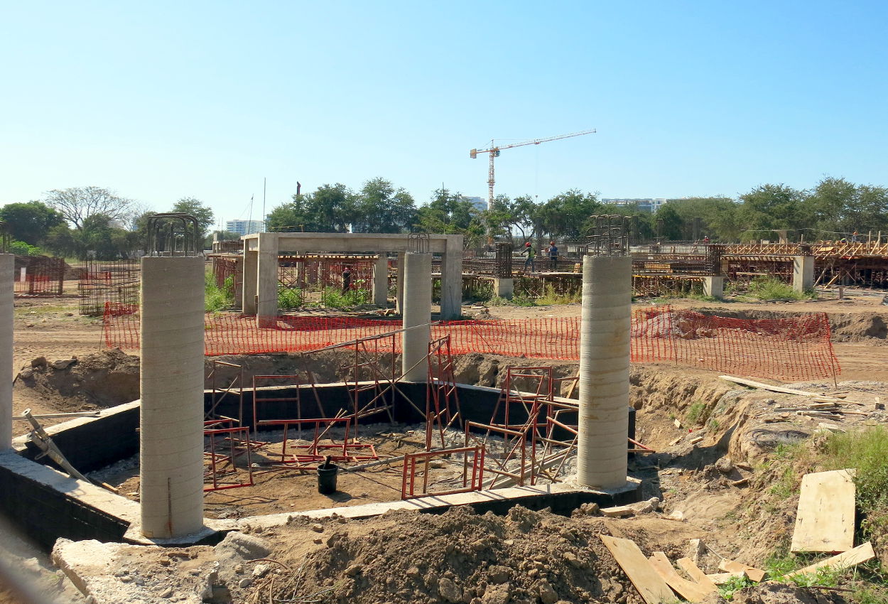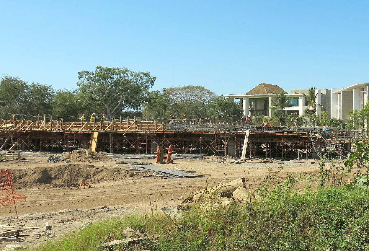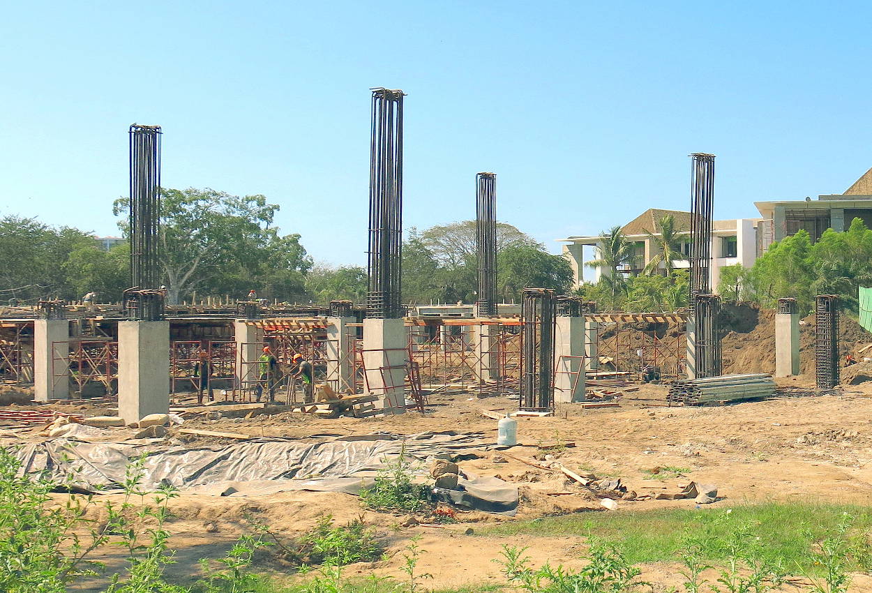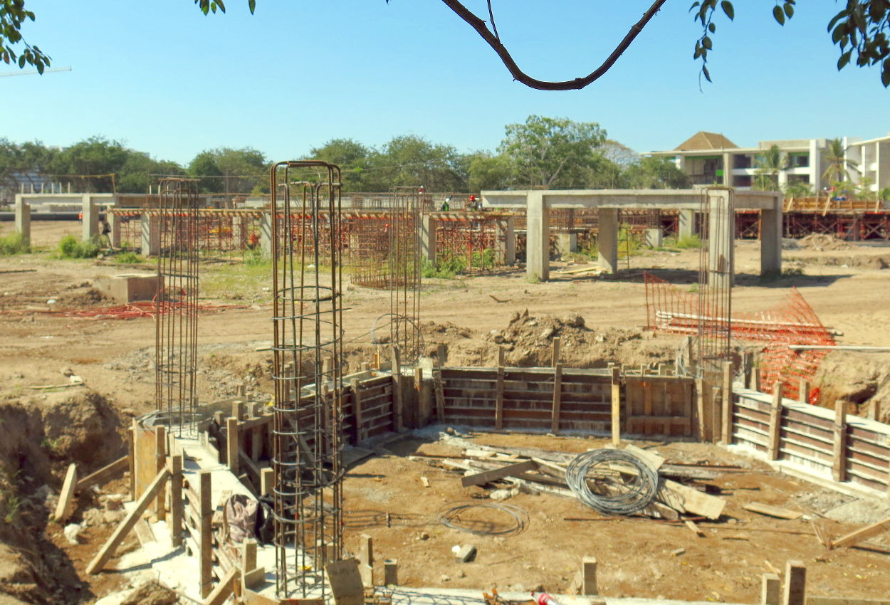 The Jalisco Estates development is taking shape. The central plaza is full of rebar. Nothing is definable yet.A new pod appears to be under construction south of the new golf academy building, which is the white building at the end of the bridge.