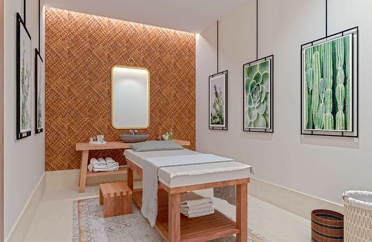The unit includes a Massage Room, complete with table and towels.