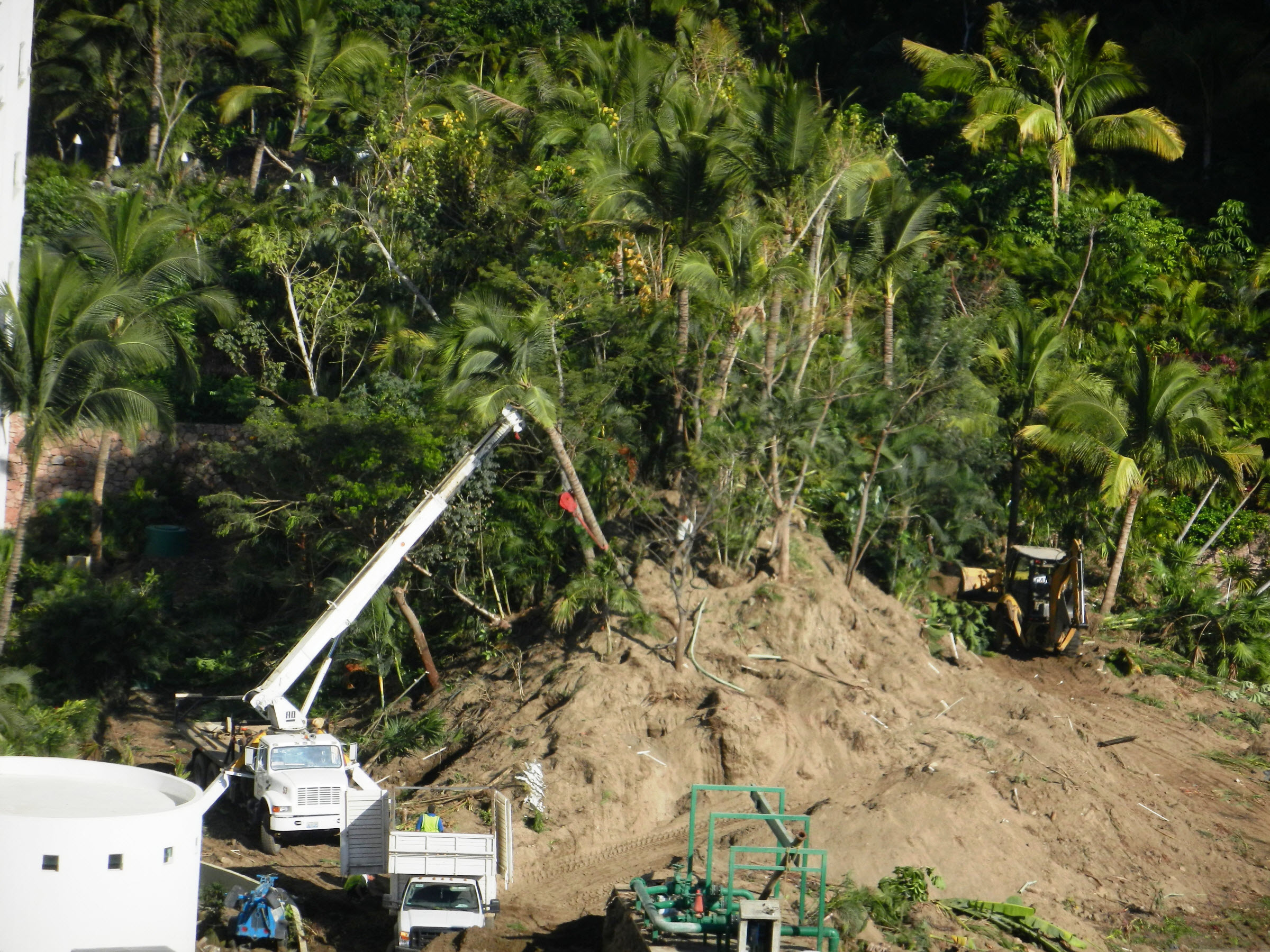 This photo shows the tractors on the Mayan Palace roof at Nuevo Vallarta, Mexico. They are there to start another demolition project. We hear many outcomes but are not certain of any. Stay tuned....