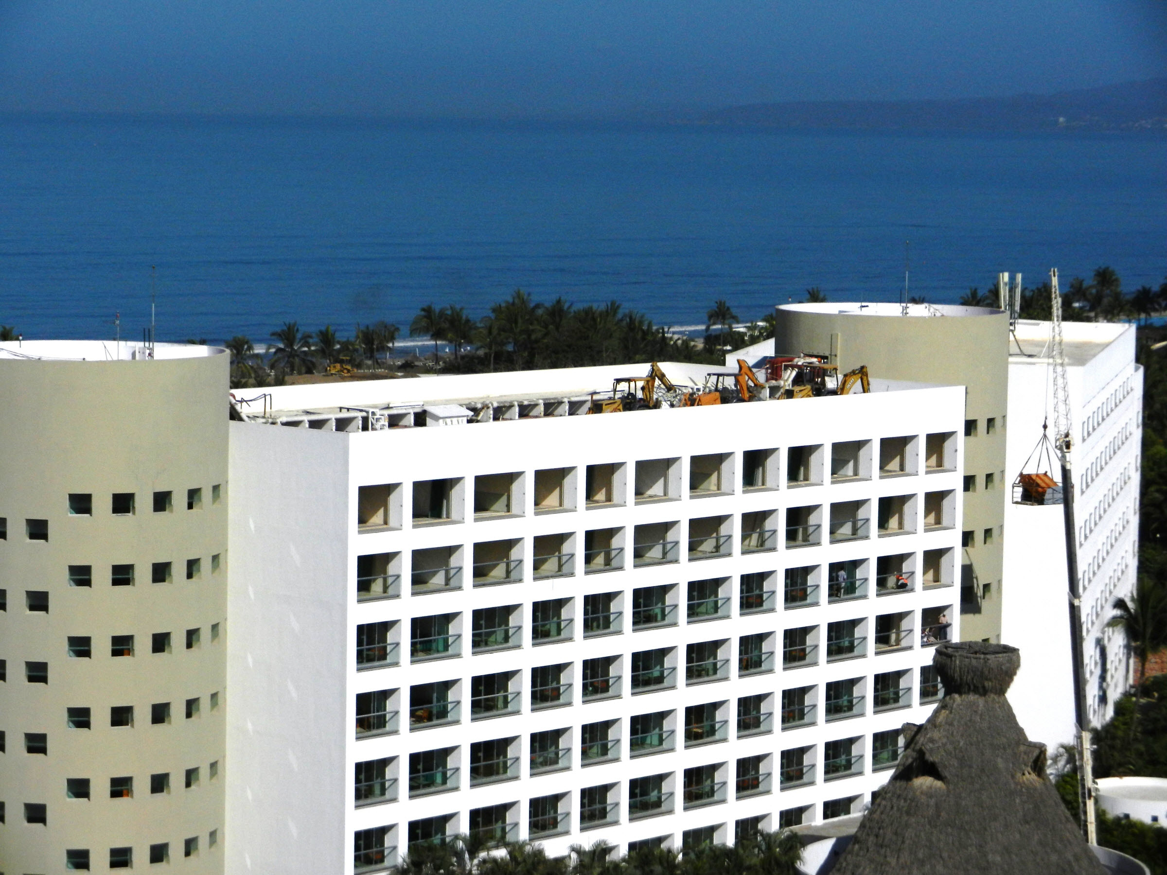The Mayan Palace infinity pond overlooks Bahia de Banderas. Now there are changes. The Nuevo Vallarta Mayan Palace is closed for the summer and construction crews are inside and out. Stay tuned...