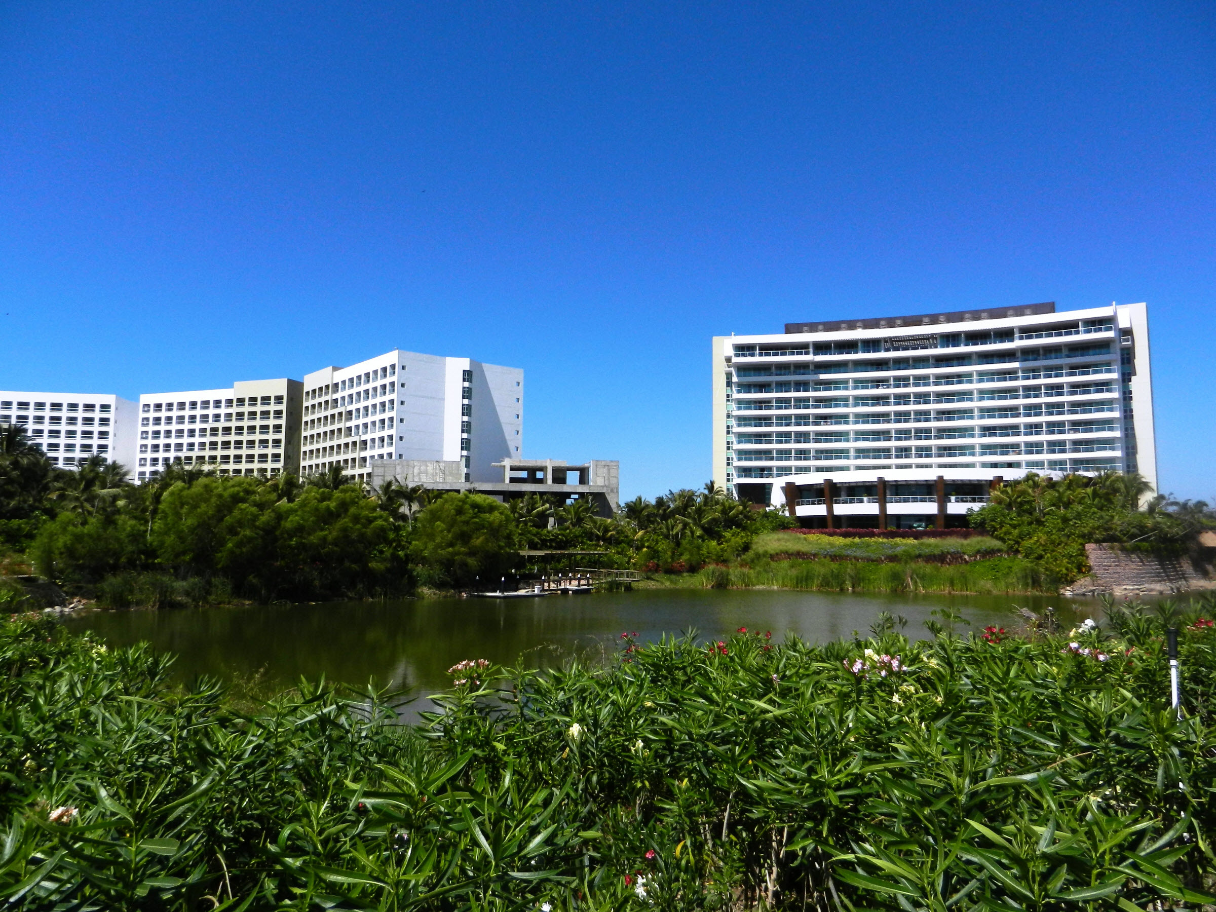 The Mayan Palace at Nuevo Vallarta, Mexico is changing. First the south tower was demolished. Now there are pumps emptying the Infinity pond, which is one of our favorites. There are five other Mayan Palace structures in the Vidanta system. The newest is in Acapulco, Mexico, and it opened in late 2010.