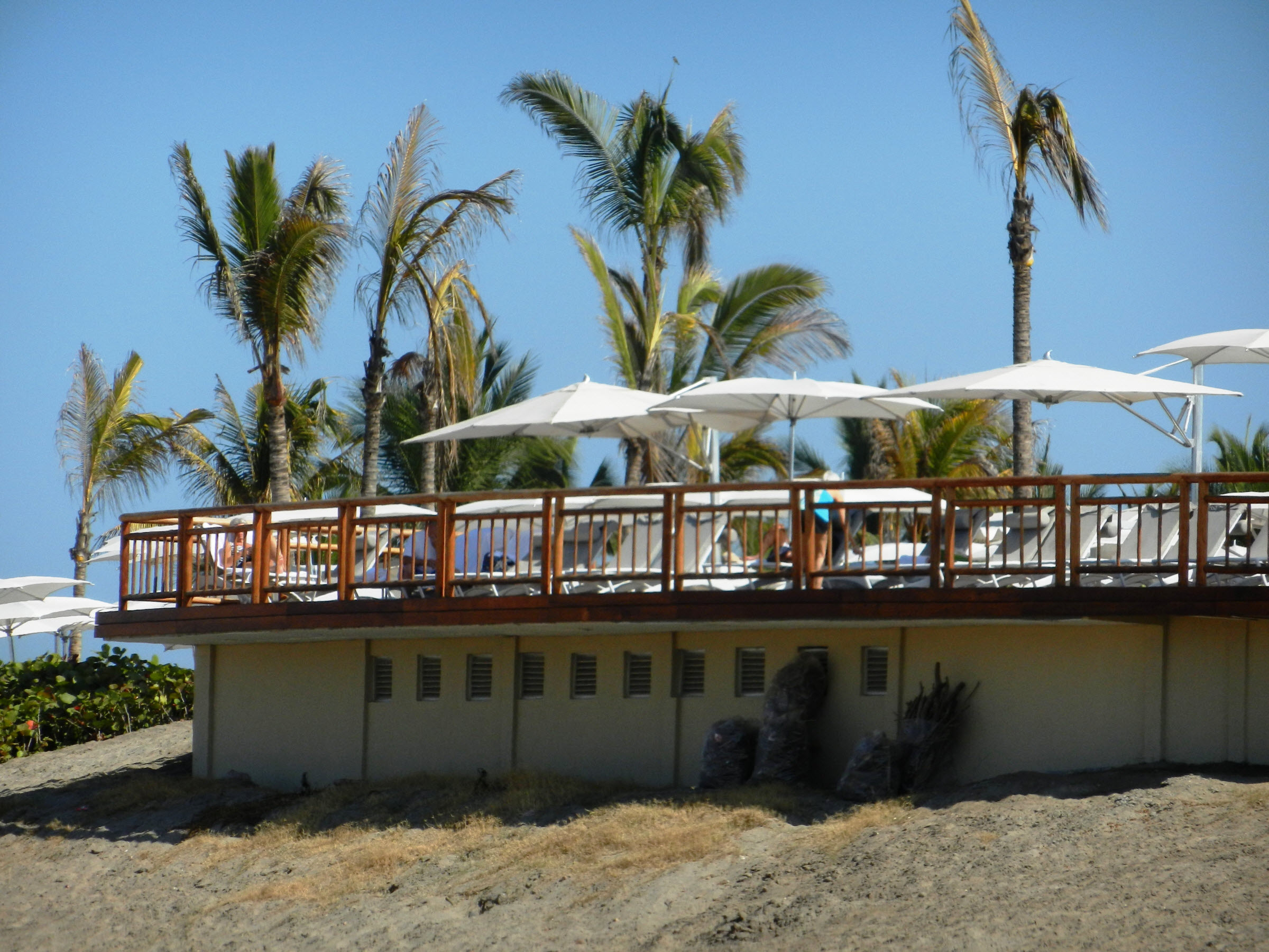 This photo shows the wave breaking on the beach in front of the Punta at Nuevo Vallarta, Mexico. The seating areas are for all Grand Luxxe members. What a view! Also, wait staff use Segway Scooters to deliver drinks and food from the Si Snack Shack.