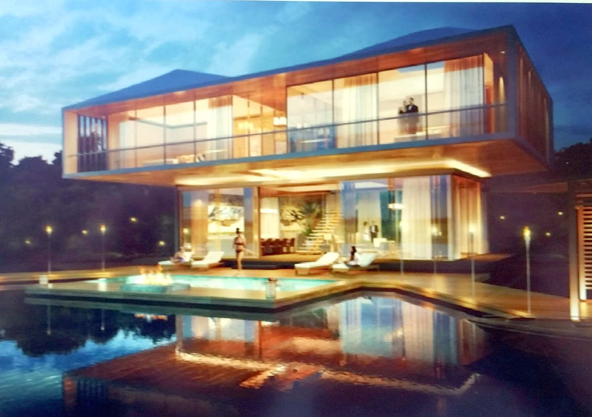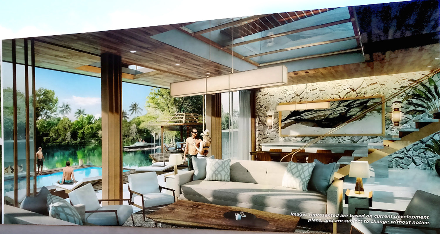The Sales Department at Grupo Vidanta/Vidanta/Vida Vacations is discussing a new project called Jungle Estates. Jungle Estates units are single family home structures located on cenotes west of Highway 307 and the Joya Theater in the Playa Paraiso/Playa del Carmen region of Riviera Maya in the state of Quintana Roo, Mexico. This photo shows an architect's rendering of one of the new homes in the Estates collection of homes.