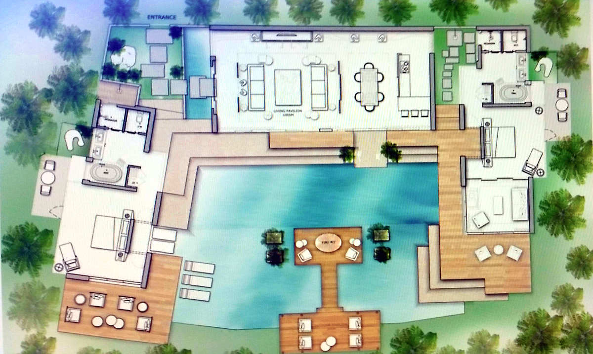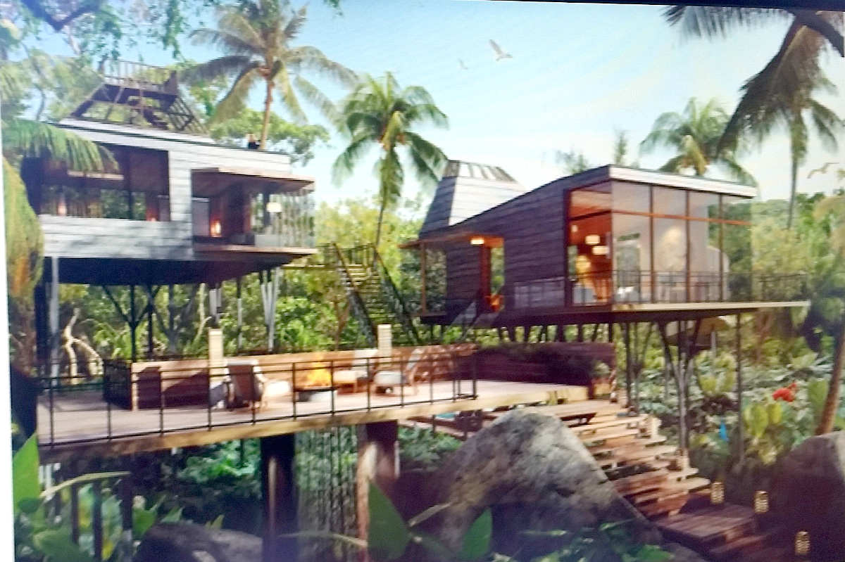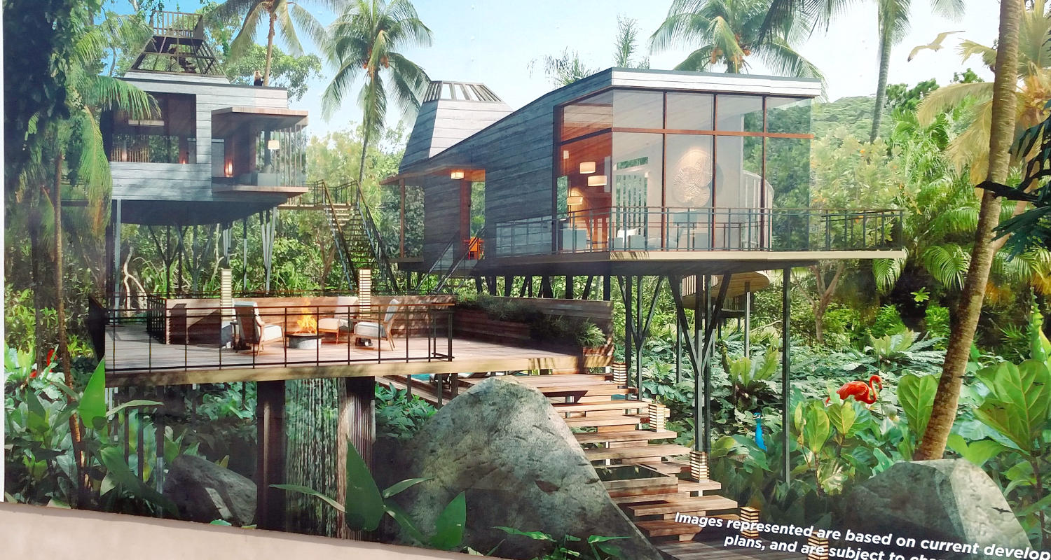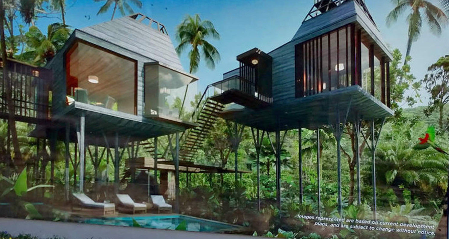 The Sales Department at Grupo Vidanta/Vidanta/Vida Vacations is discussing a new project called "Jungle Estates". Jungle Estates units are single family home structures located on cenotes west of Highway 307 and the Joya Theater in the Playa Paraiso/Playa del Carmen region of Riviera Maya in the state of Quintana Roo, Mexico. This photo shows an architect's rendering of one of the new homes in the Estates collection of homes.