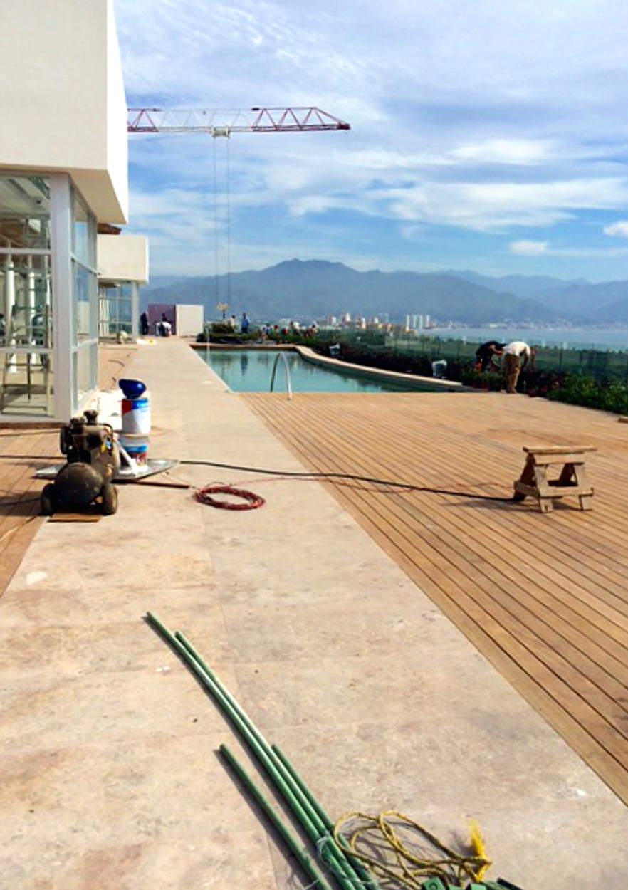 The pool on the 10 floor is going to be very nice. They are working very hard to finish it and yesterday the furniture arrived. Steve and I got in trouble by security last night for being up there so don't know when we will get back up there. It is very small so there will have to be limited access to using it.