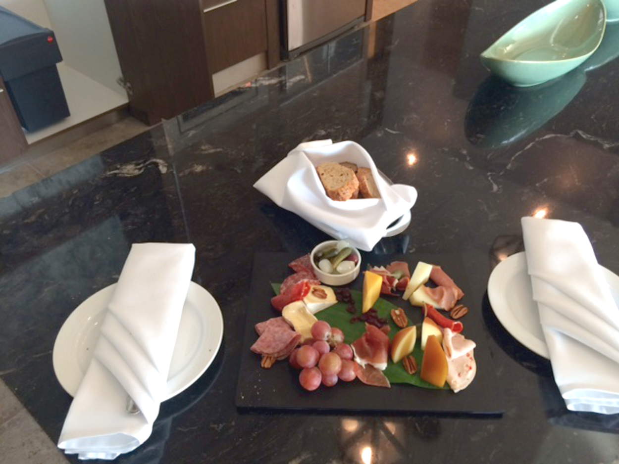 When we arrived we were taken by a private shuttle straight to the residence tower which they are call Tower 5 as well as Residence. Check in was fast and very simple. We were greeted with a choice of drinks...with alcohol and non alcohol. The elevators were not working and have not been working most of the week. My fitbit shows 10 flights of stairs to get to our 5th story villa. When we got to our room there was a bottle of champagne , cheese platter, fruit and flowers. The rooms are very nice and furnished and equipped like the lofts. The view from our deck is nice though no sunrise or sunset.