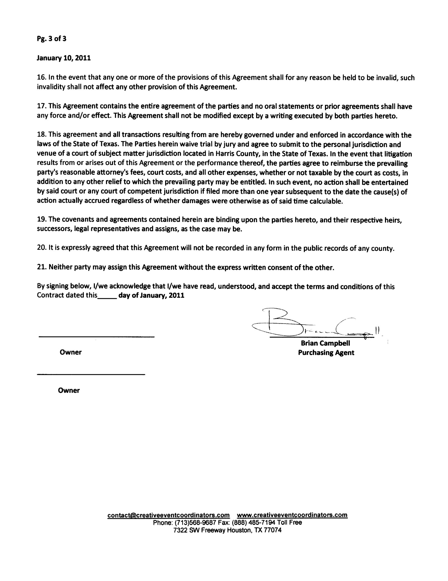 Creative Events Coordinators Rental Contract Page 3